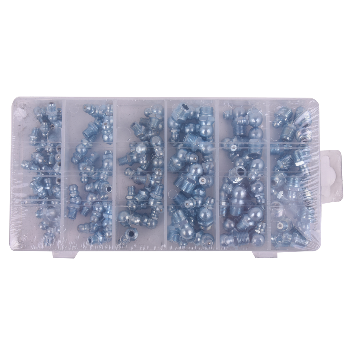 Contains: (30) Straight 1/4in-28; (15) 45° 1/4in-28; (15) 90° 1/4in-28; (15) 90° 1/4in NPT; (15) 45° 1/8in NPT; (20) Straight 1/8in NPT.