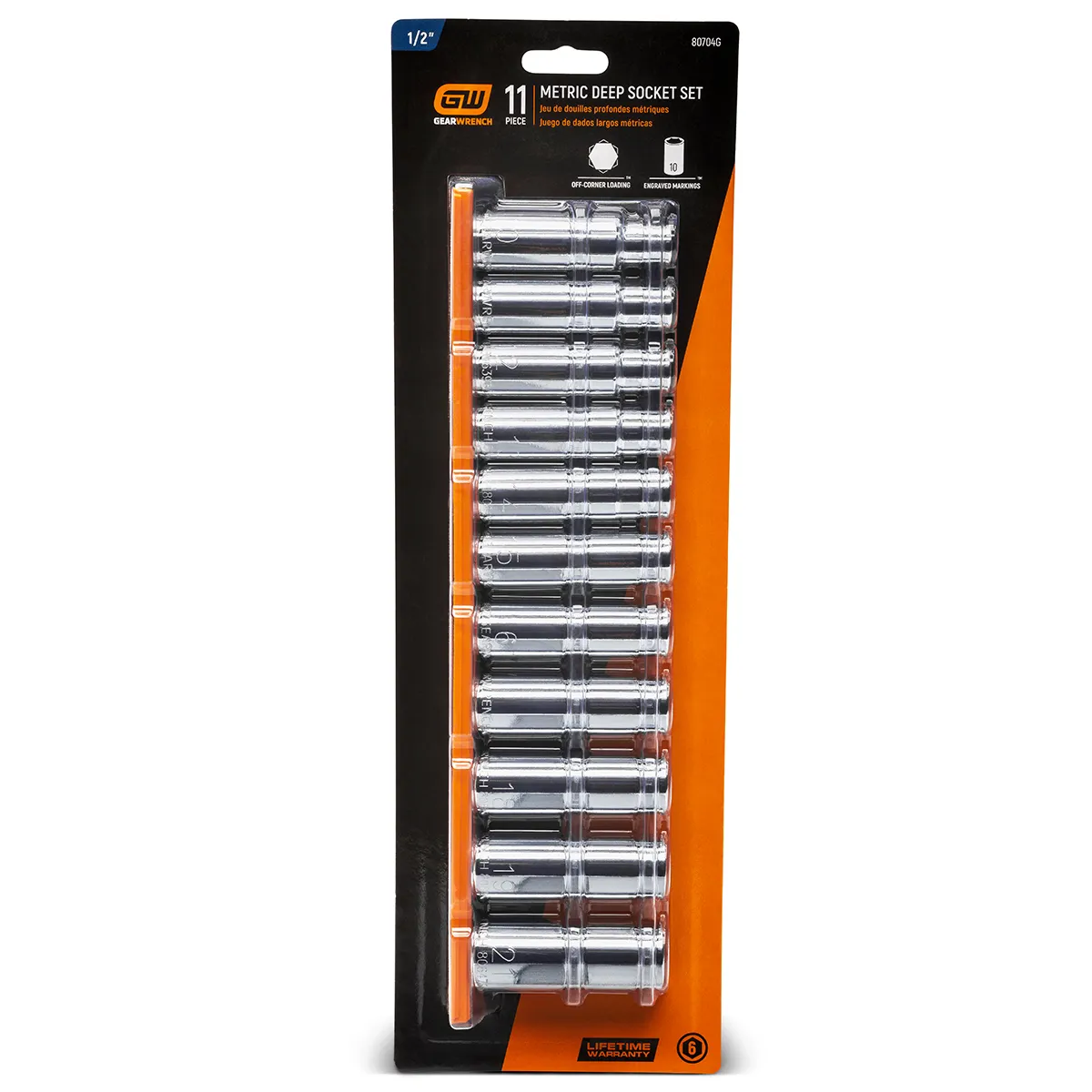 The GEARWRENCH 11pc 1/2in Drive 6-Point Deep Socket Set (10mm-21mm) is designed for precision; durability; and ease of use.