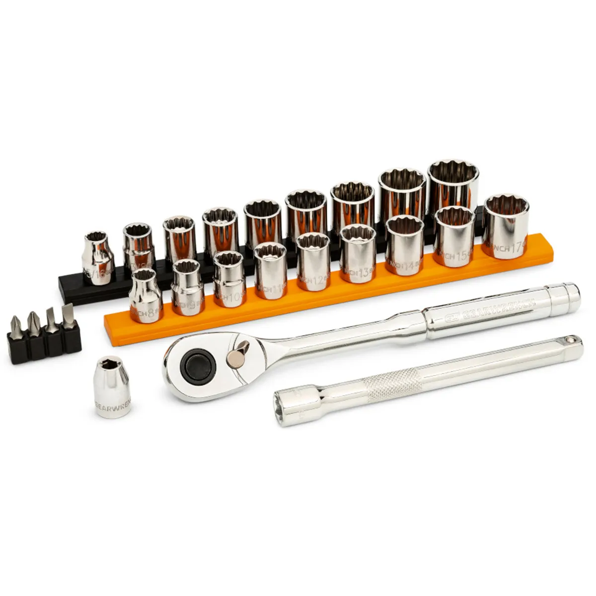 Set comes with a socket rail for storage and organization.