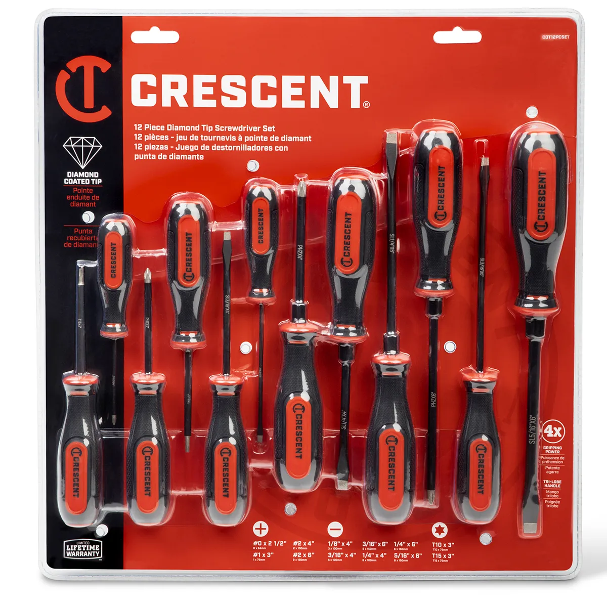The Crescent diamond tip screwdrivers have a co-molded acetate handle for improved user comfort.
