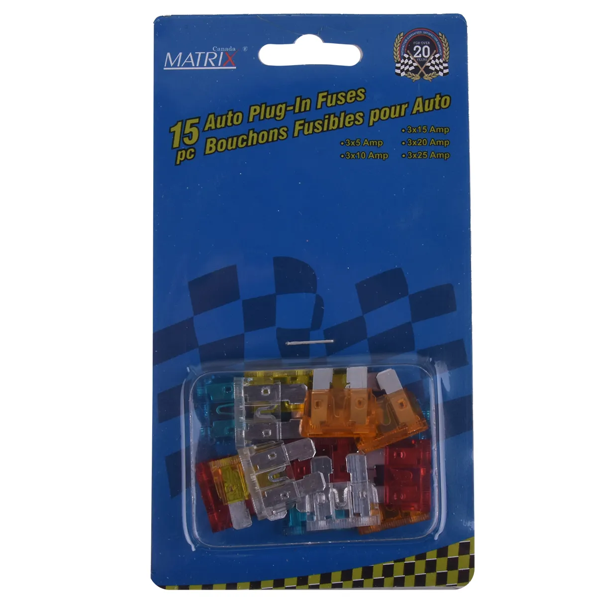The Matrix Automotive 15 piece auto plug-in fuses.