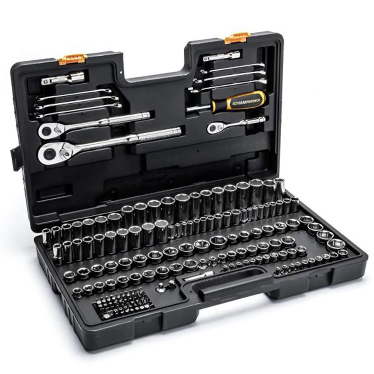 GW72MCBMTS is a 185 piece 1/4 in.; 3/8 in.; and 1/2 in drive mechanics tool set that features precision 6 point sockets in SAE and metric sizes and in standard and deep lengths.