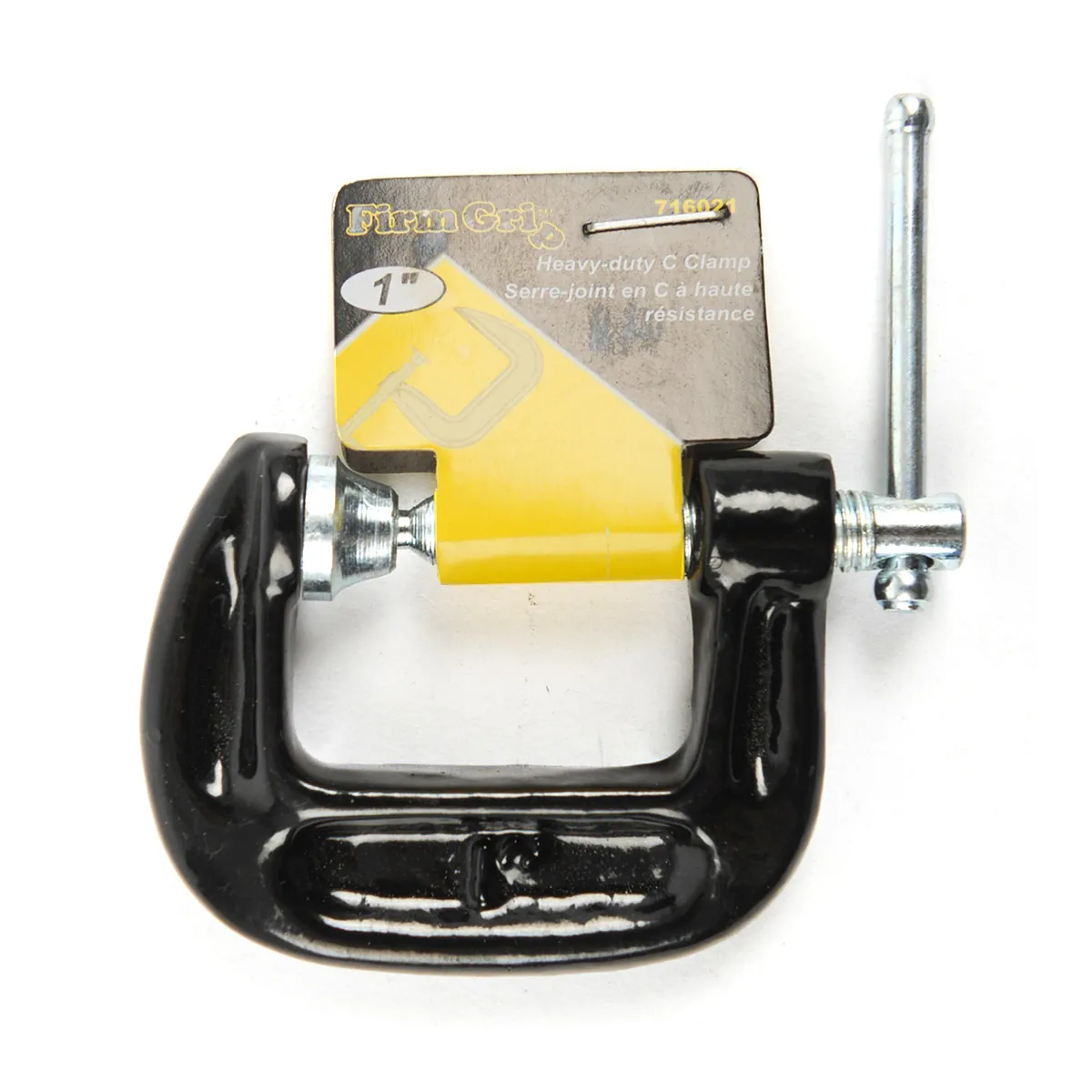 Durable cast construction. Reinforced corners. Chrome plated A3 steel screw. Large swivel pad. Sliding T-bar handle.