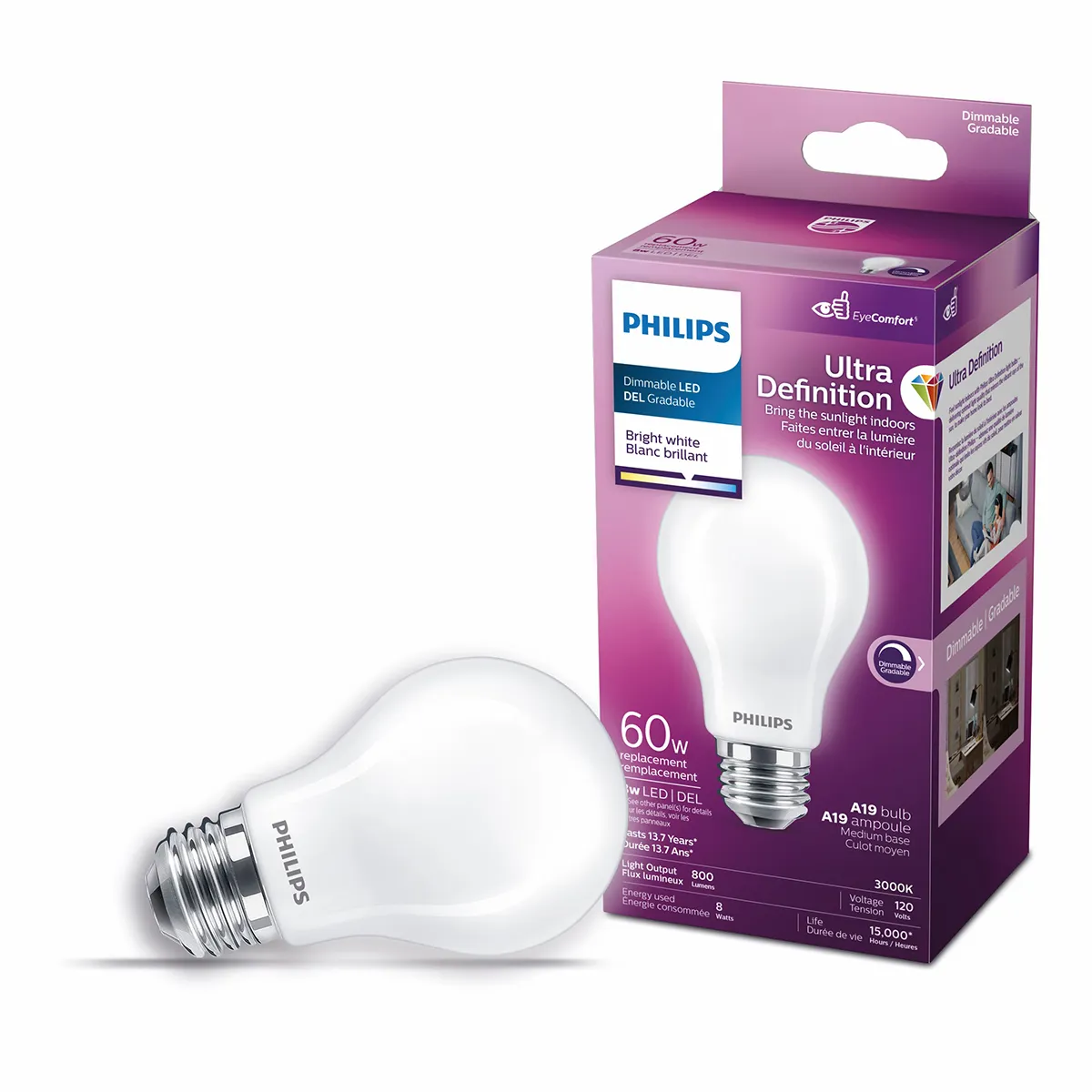 1PK Dimmable LED Light Bulb 8w (60w) A19 Bright White