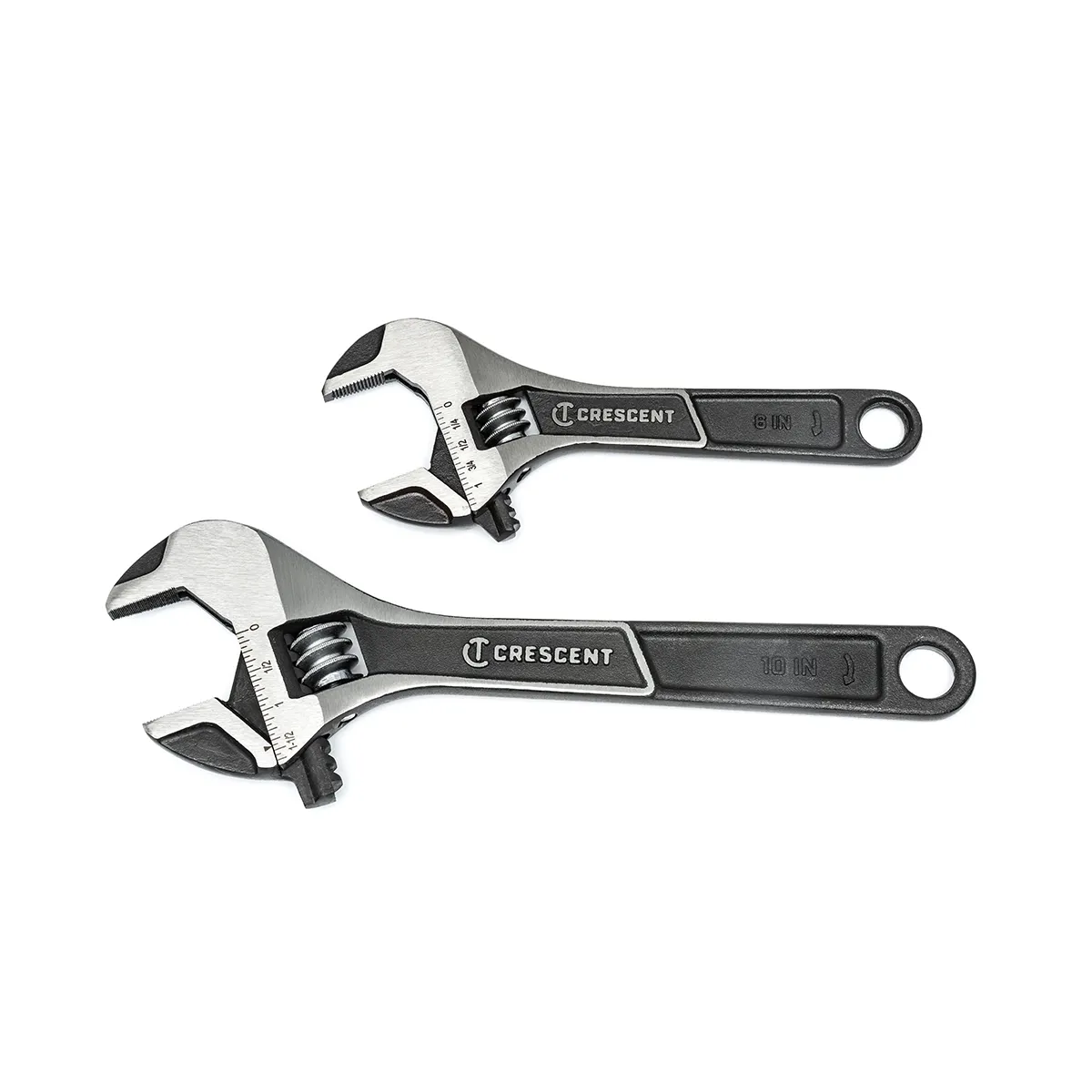 • 2PC Wide Jaw Adjustable Wrench Set 6in & 10in