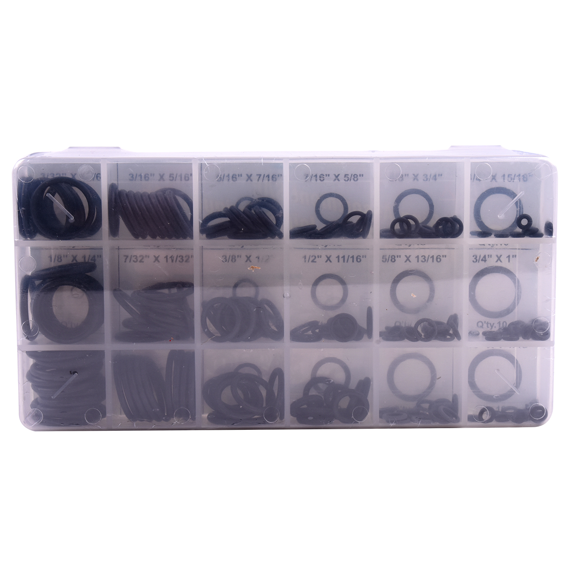 Contains 225 Pieces: (10) 3/32in x 15/64; (10) 9/16in x 3/4in; (20) 1/8in x 1/4in; (10) 1/2in x 11/16in; (20) 5/32in x 9/32in; (10) 7/16in x 5/8in; (15) 7/32in x 11/32in; (10) 5/8in x 13/16in; (20) 3/16in x 5/16in; (10) 5/8in x 3/4in; (15) 5/16in x 7/16in; (10) 11/16in x 7/8in; (15) 1/4in x 3/8in; (10) 13/16in x 1 1/16in; (10) 3/8in x 9/16in; (10) 3/4in x 15/16in; (10) 3/8in x 1/2in; (10) 3/4in x 1in.