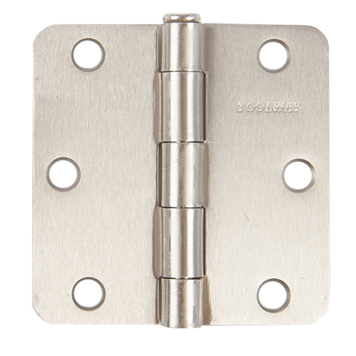 2PC Door Hinge 3in x 3in x 2mm Round Corner ¼in Brushed Nickel Steel
