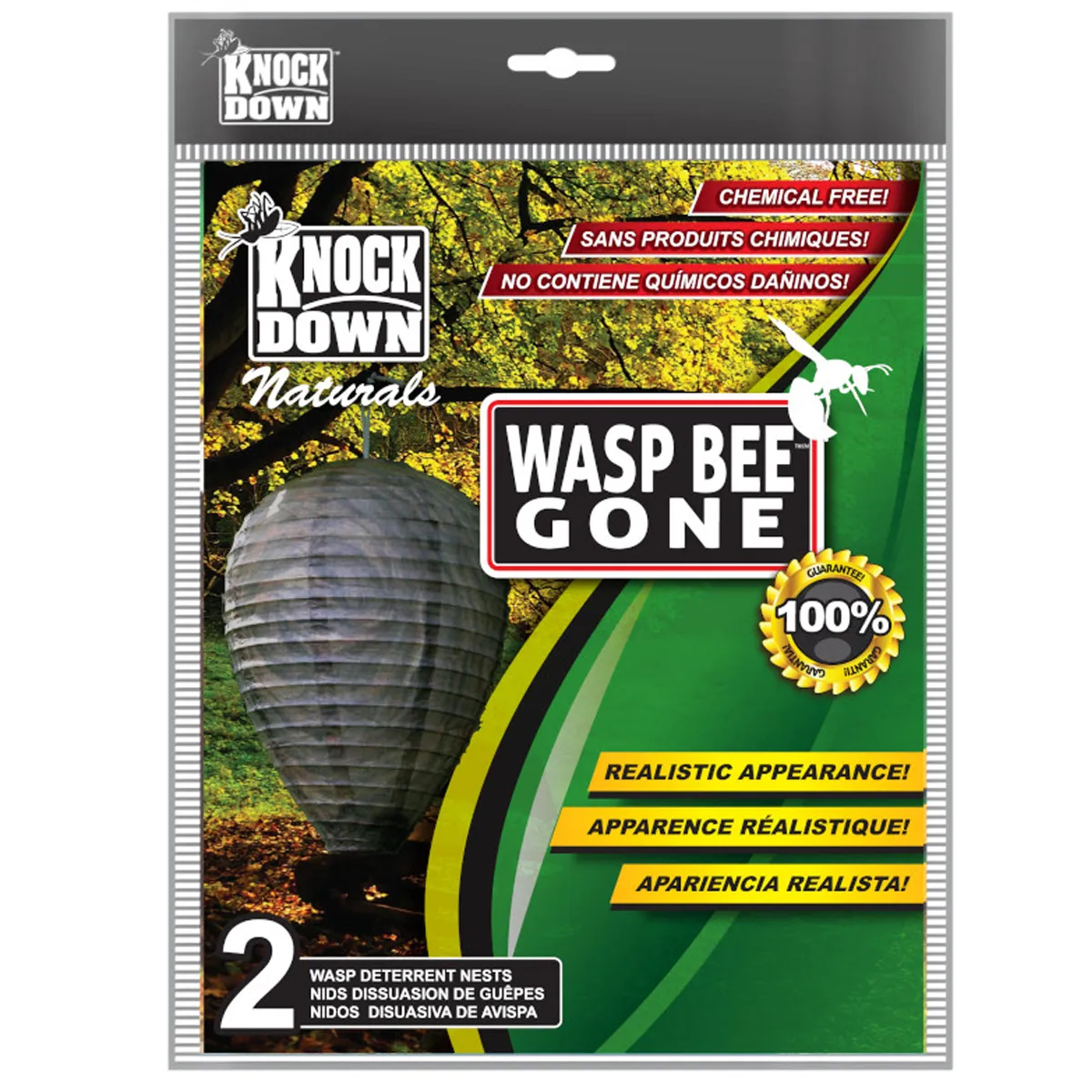 Knock down™ wasp bee gone wasp nest decoys; 2 pack; your solution to preventing the formation of wasp nests around your house. Wasps are extremely territorial. Once they see that a nest has already been built in the area; they'll flee to find a different location to form their own; leaving you to enjoy your outdoor activities in peace. Say goodbye to unwanted guests and reclaim your outdoor space with knock down™ wasp bee gone wasp nest decoys. Read the entire label before use.