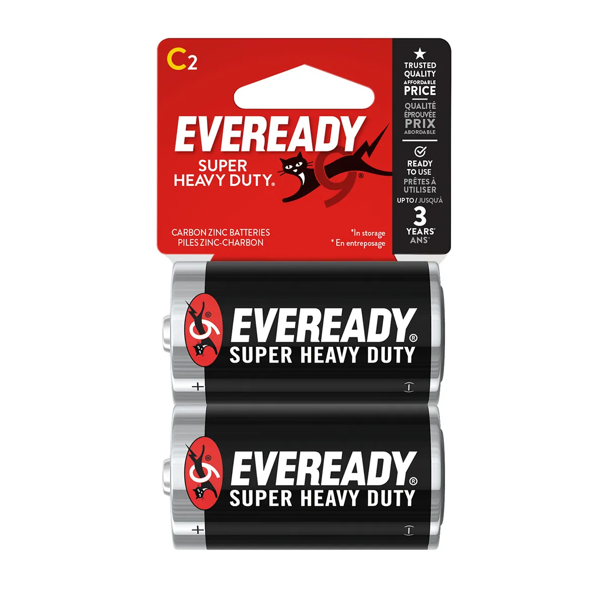 EVEREADY® Super Heavy Duty® is the affordable Carbon Zinc solution that provides power for you and your family’s basic power needs. EVEREADY® Super Heavy Duty® brand offers a complete line of AA; AAA; C; D; 9v and 6v lantern batteries and are an economical choice for clocks; flashlights; radios and other devices that are low drain. Since 1896 EVEREADY® batteries have been providing dependable portable power. For every family; everywhere; every day. EVEREADY® for Life.