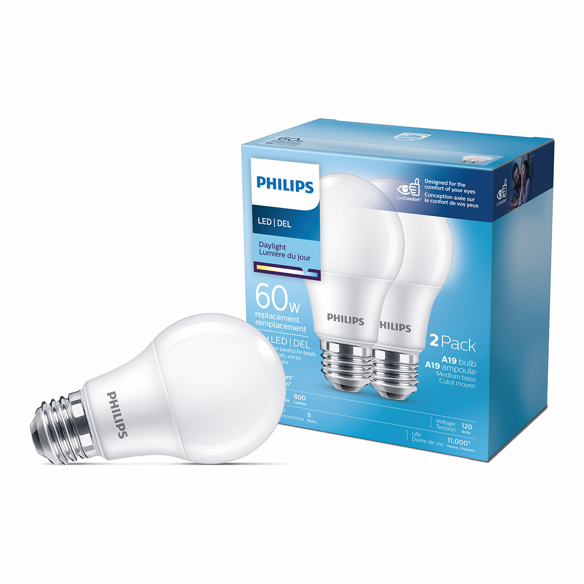 2PK LED Light Bulb 9w (60w) A19 Daylight
