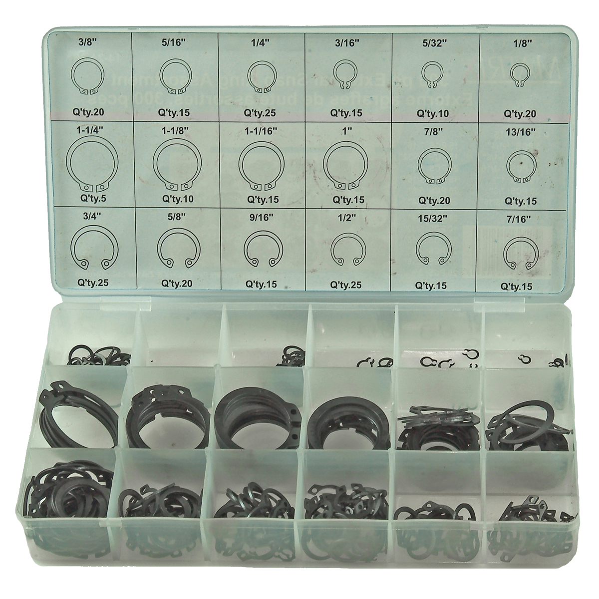 Contains: (5) 1-1/4in; (10) 1-1/8in; (15) 1-1/16in; (15) 1in; (20) 7/8in; (15) 13/16in; (15) 7/16in; (15) 15/32in; (25) 1/2in; (15) 9/16in; (20) 5/8in; (25) 3/4in; (20) 1/8in; (10) 5/32in; (15) 3/16in; (25) 1/4in; (15) 5/16in; (20) 3/8in.
