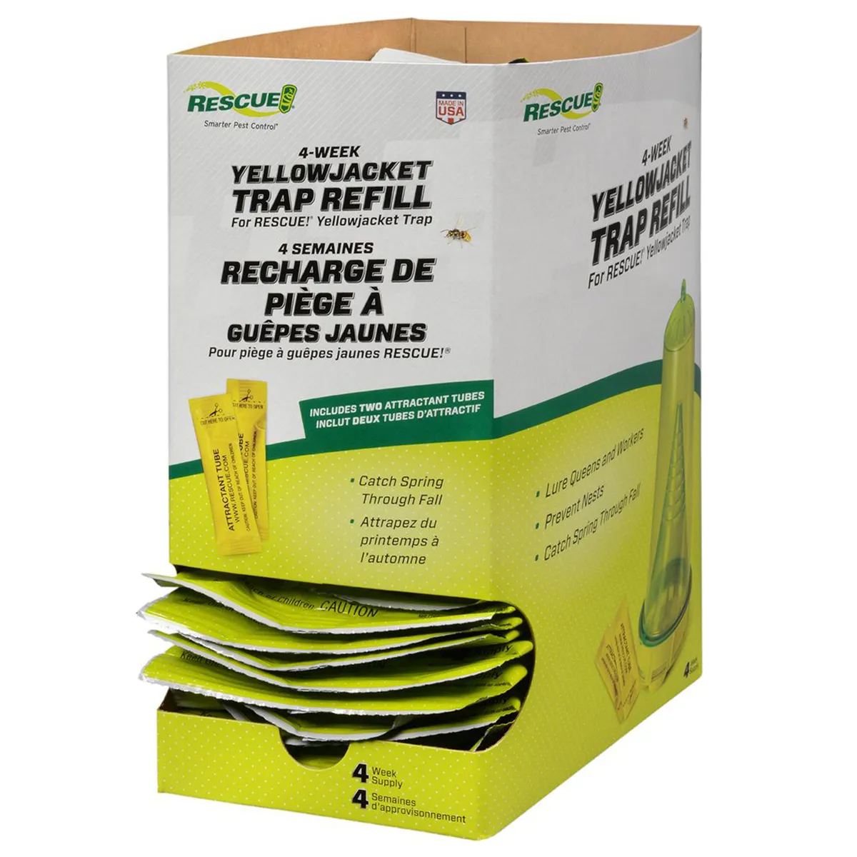 The RESCUE! Yellow jacket Attractant works inside the RESCUE! Yellow jacket Trap to lure all major species of yellow jackets. Two vials are enclosed.