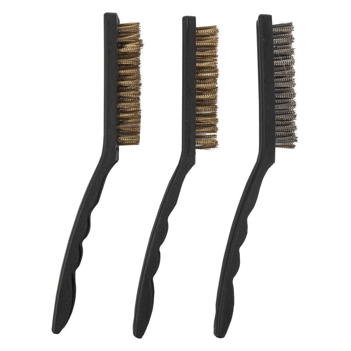 - 9in mini wire brush set( 3x12 row nylon;stainless steel; brass).