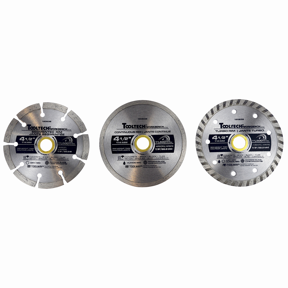 3PC Diamond Saw Blades 4-1/2in Set (Segmented/Turbo/Continuous)