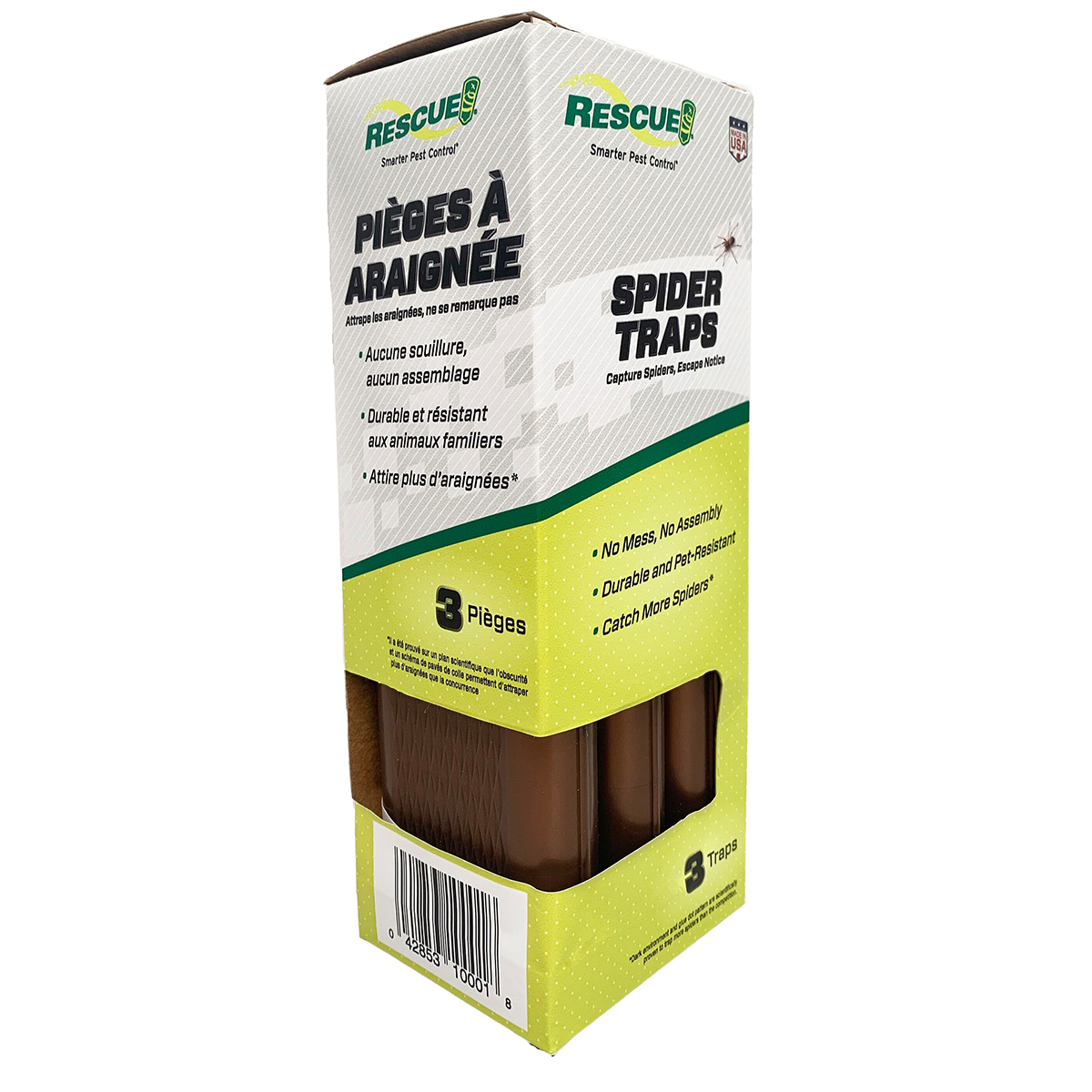 The RESCUE! Spider Trap catches a variety of biting and poisonous spiders common in the home, including: black widow spiders, brown recluse spiders, sac spiders, hobo spiders, jumping spiders and wolf spiders. It works with four entrances and hundreds of glue dots, allowing spiders to travel to the interior of the trap instead of merely congregating on the edges -- allowing many more to be caught. Spiders cannot remove themselves from the glue and eventually expire. And with two sides of glue, a quick flip of the trap keeps you in the spider-catching business. Rescue Spider Trap, 3 pack: Exclusive glue dot pattern allows more spiders to be caught. Decorative plastic shell thin shape allows placement in narrow spaces. Sturdy plastic shell withstands crushing or bending. Ready to use; nothing to assemble and two sides of glue for double the use. Attractive, yet inconspicuous.