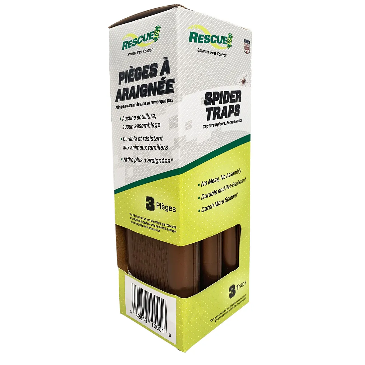 • The RESCUE! Spider Trap catches a variety of biting and poisonous spiders common in the home, including: black widow spiders, brown recluse spiders, sac spiders, hobo spiders, jumping spiders and wolf spiders. It works with four entrances and hundreds of glue dots, allowing spiders to travel to the interior of the trap instead of merely congregating on the edges -- allowing many more to be caught. Spiders cannot remove themselves from the glue and eventually expire. And with two sides of glue, a quick flip of the trap keeps you in the spider-catching business. Rescue Spider Trap, 3 pack: Exclusive glue dot pattern allows more spiders to be caught. Decorative plastic shell thin shape allows placement in narrow spaces. Sturdy plastic shell withstands crushing or bending. Ready to use; nothing to assemble and two sides of glue for double the use. Attractive, yet inconspicuous.