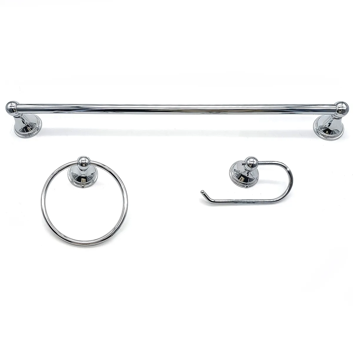 Set includes: 24 in towel bar, towel ring and toilet paper holder.