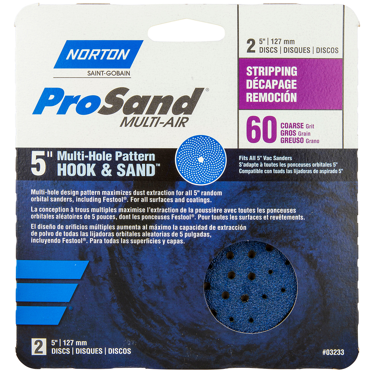 Revolutionary Norton ProSand Multi Air Cyclonic Hook and Loop vacuum discs raise the bar in power sanding with a precision laser-cut; spiral-hole design that provides maximum dust extraction for a cleaner work environment with fewer disc changes and greater productivity"".