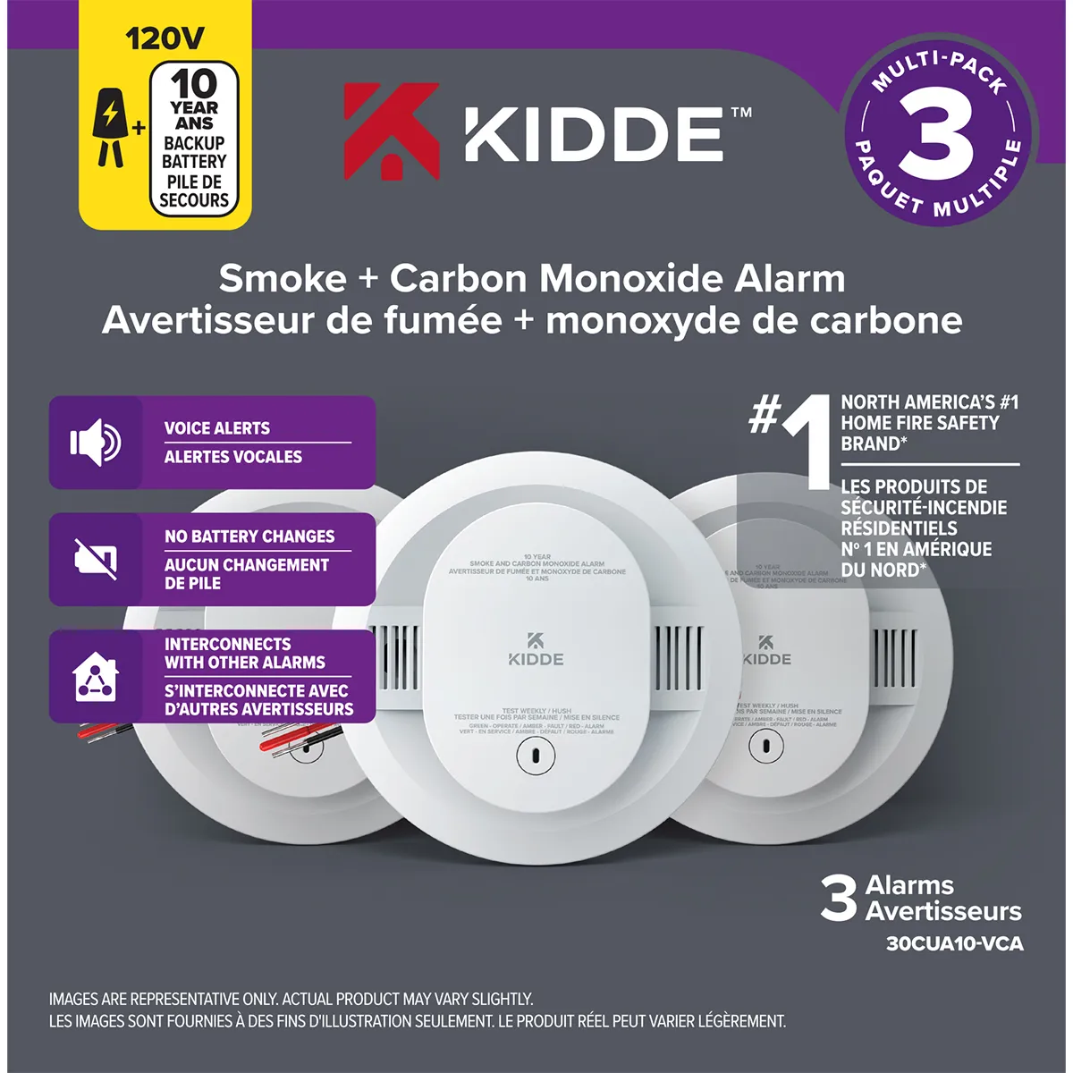 3PK Smoke + Carbon Monoxide Alarm 120V Hardwire W/10-Yearr Lithium Battery Backup