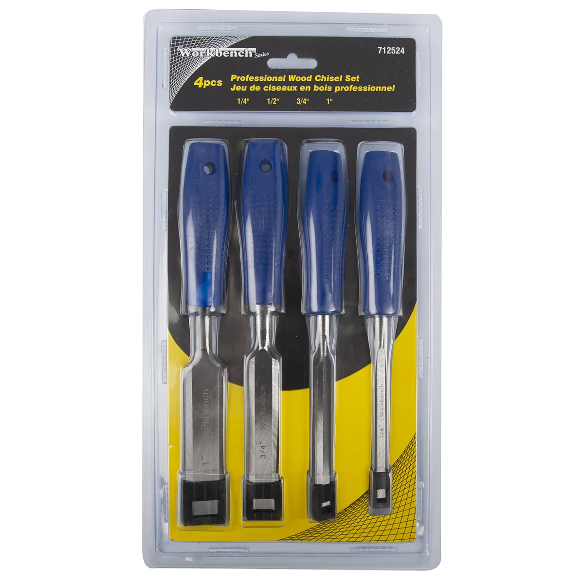 4 Pieces wood chisel set. Size: 1/4; 1/2; 3/4; 1 inch.