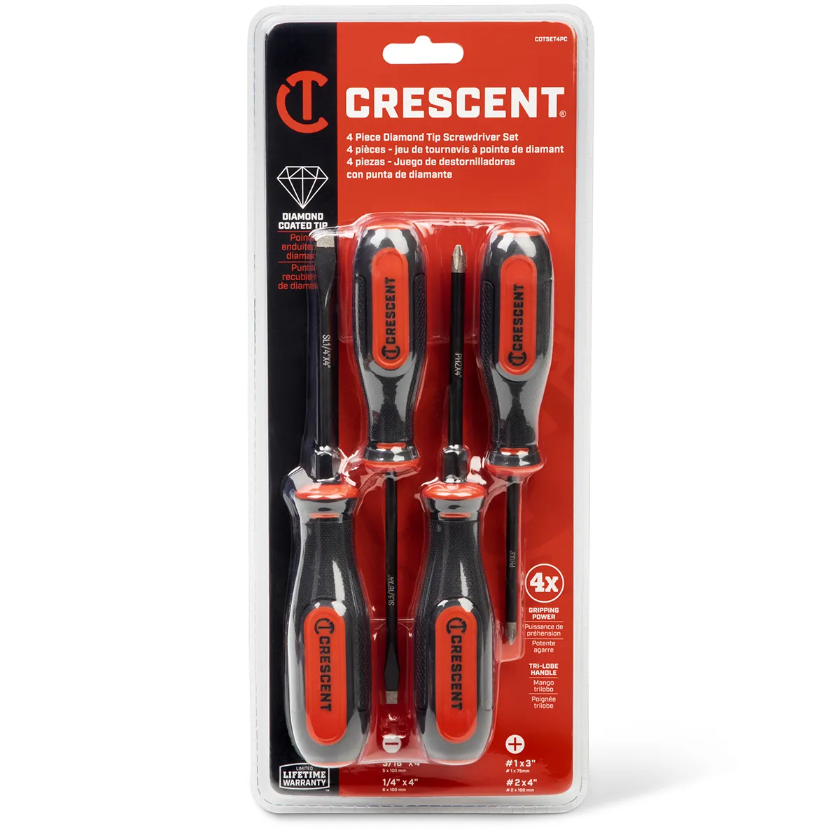 • The Crescent diamond tip screwdrivers have a co-molded acetate handle for improved user comfort.