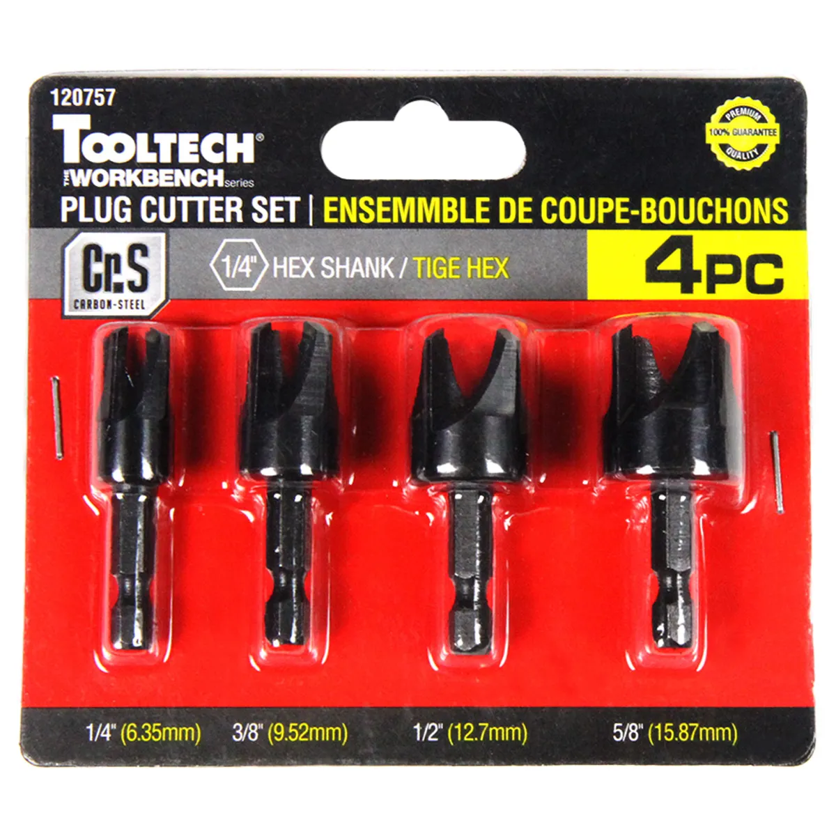 • Plug Cutter Set Carbon steel plug cutter set of 1/4; 3/8; 1/2 and 5/8in 1/4in diameter shank.