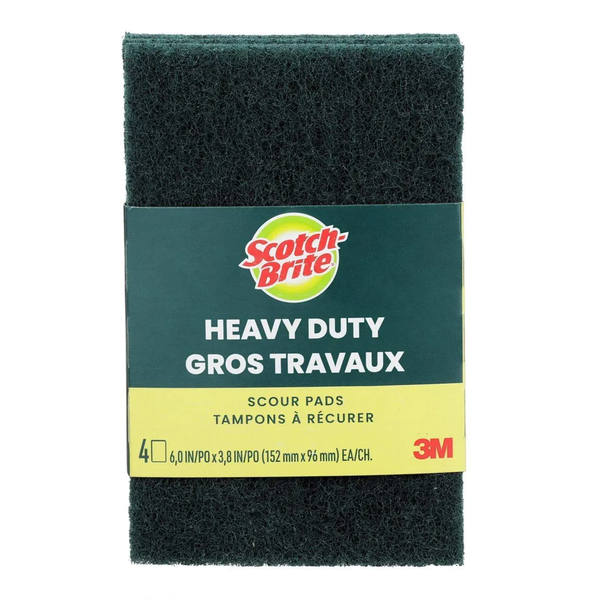 - The Scotch-Brite™ Heavy Duty Scour Pad is designed for those tough clean-up jobs both inside your home and out. It effectively removes stubborn, baked-on messes and can conveniently be used wet or dry.