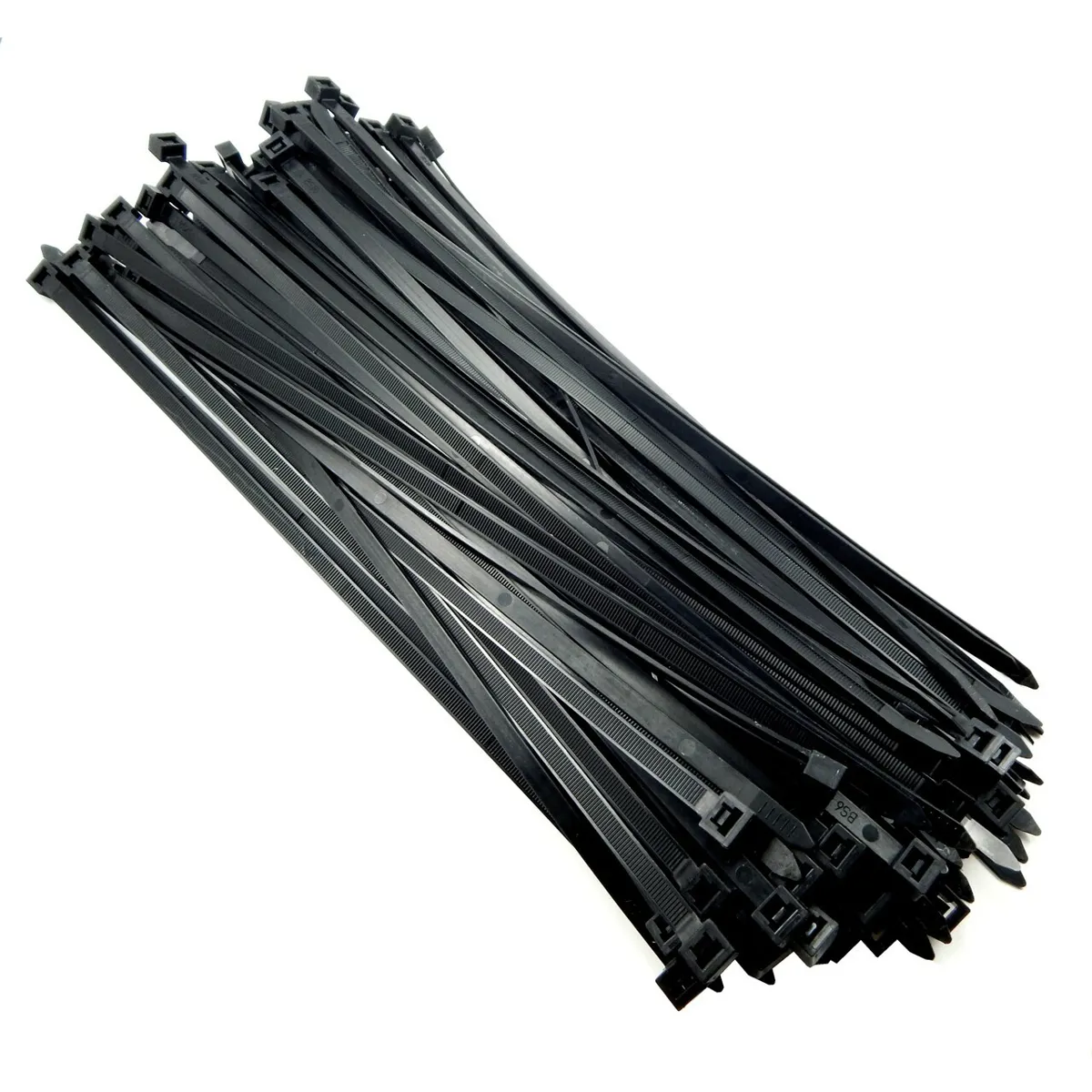 The LightWay 50 pieces 11.5 in cable ties colored black made of nylon.