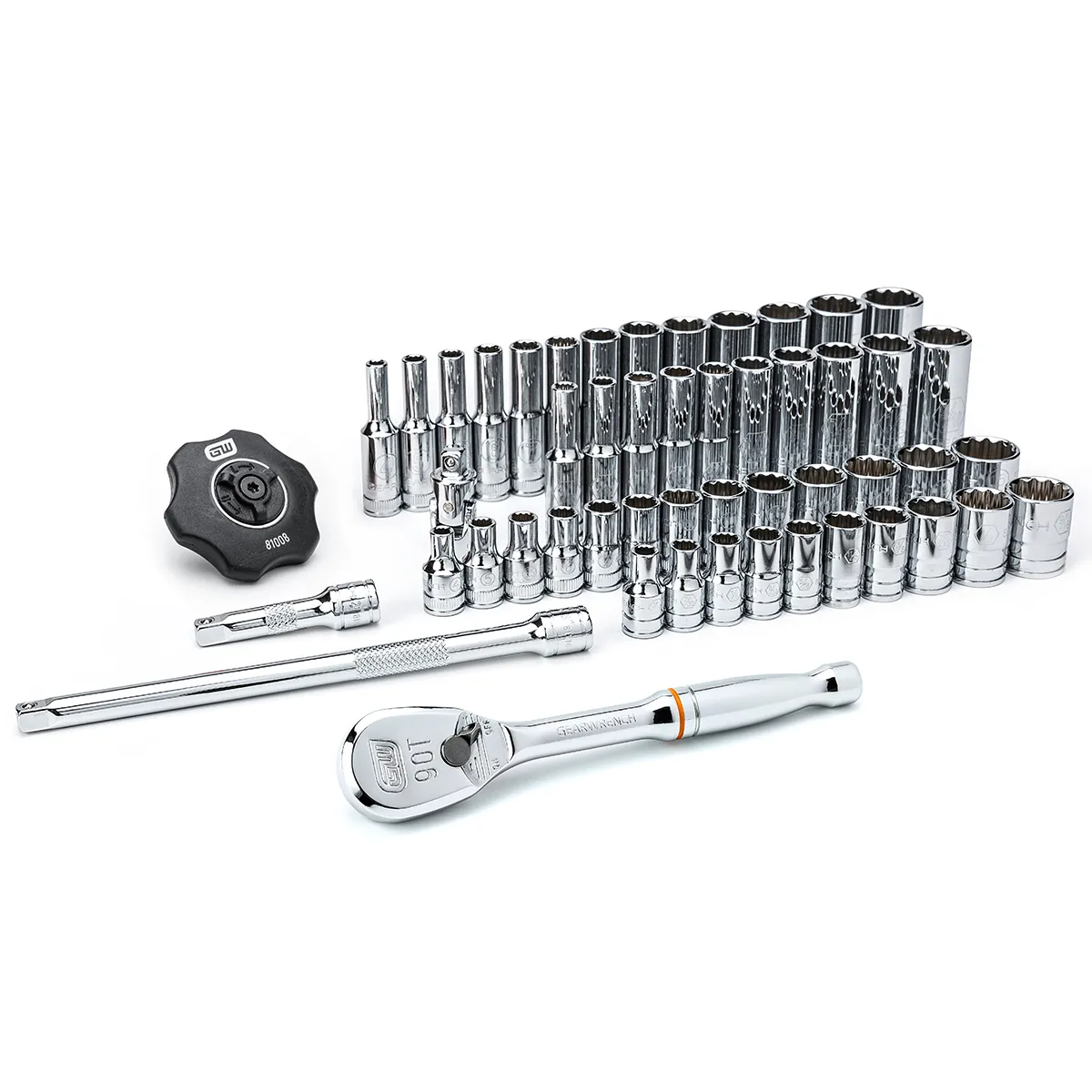 51PC Mechanics Tool Set; 1/4in Drive 12 Point Standard & Deep SAE/Metric