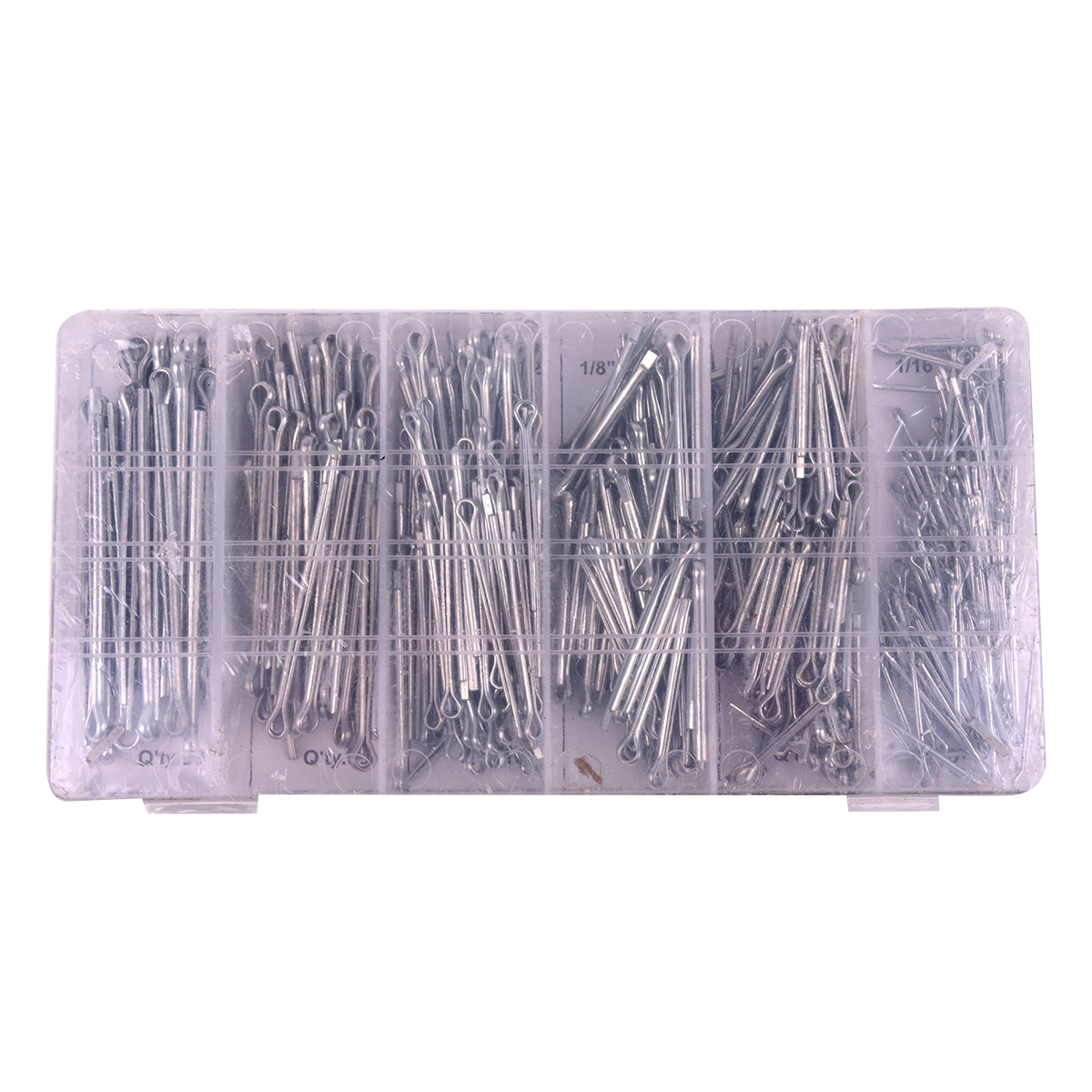 The Tooltech 555 piece cotter pin assortment. The cotter pin acts as a locking mechanism and can be used in many different situations. Cotter Pins are a simple to use fastener that requires nothing more than a bolt with a hole in it (and a drill if the bolt does not have a hole); a pair of pliers and a castle nut. The Cotter pins are made of mild steel and are used for locking nuts at place. They are inserted into the hole of the bolt and are then bent into different shapes to prevent the nut from falling out.
