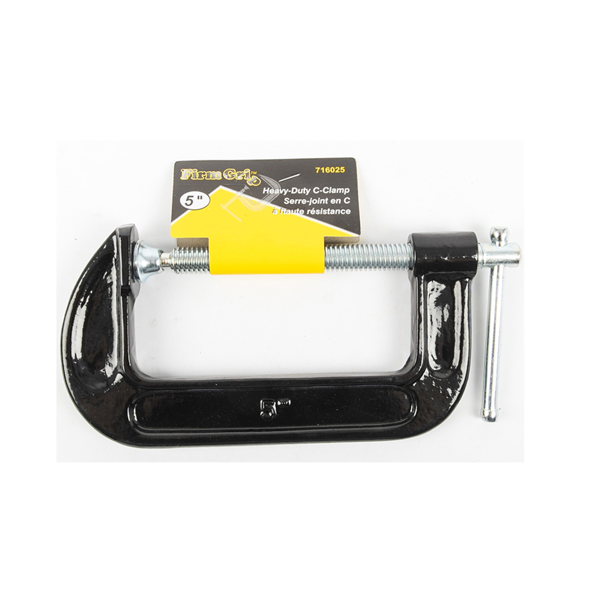 A C-clamp is a type of clamp device typically used to hold a wood or metal work piece; and often used in; but are not limited to; carpentry and welding. C-Clamps with their screws are intended as a temporary means to fasten two objects together by applying inward pressure to their outer surfaces. C-Clamps act as a second set of hands so the user has their hands free to work on the fastened objects. The c-clamp's hardened jaws give you increased gripping power and they are made of forged alloy for maximum durability; perfect for the toughest of job sites.