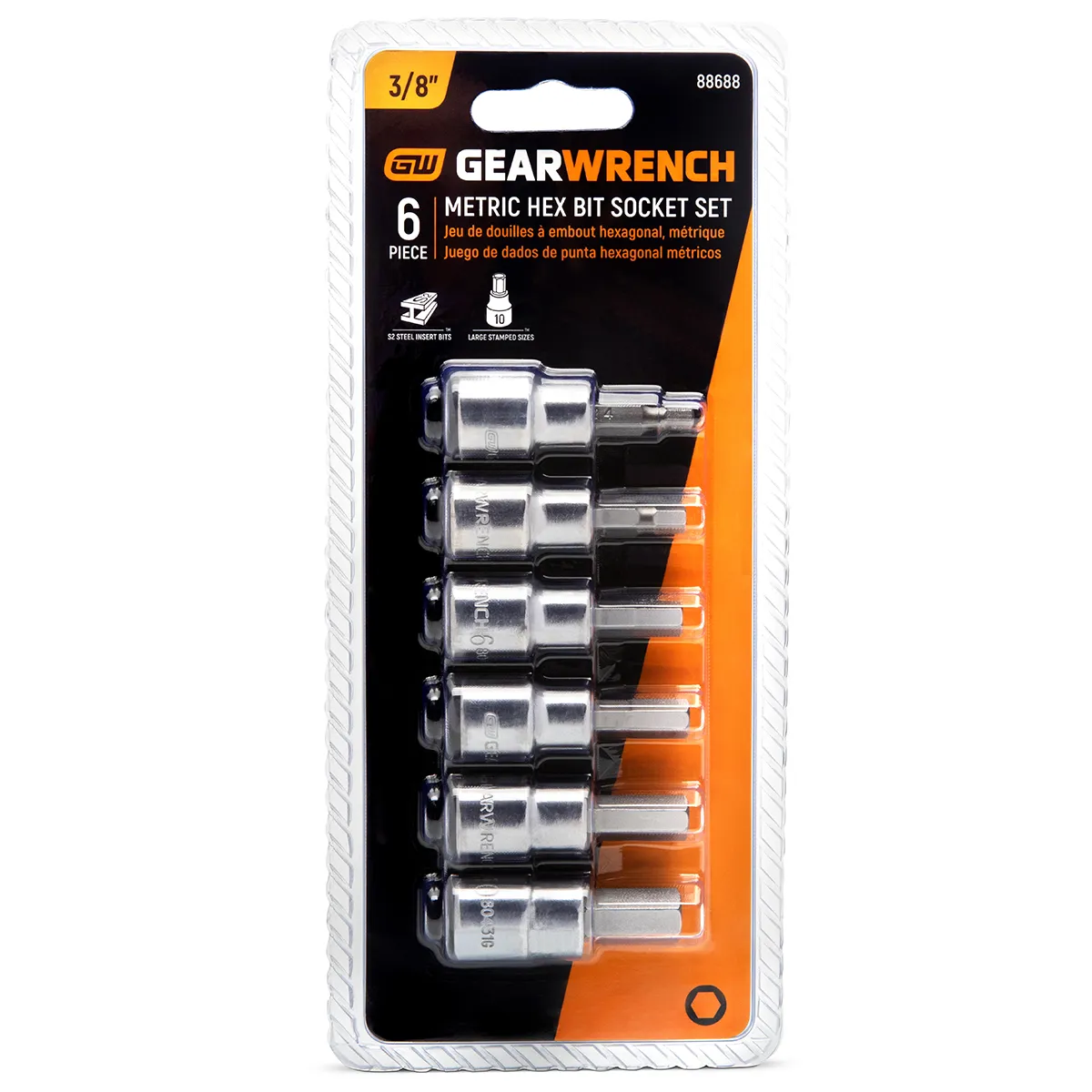 The GEARWRENCH 6pc 3/8in Drive Metric Hex Bit Socket Set (4mm – 10mm) is engineered for strength; precision; and durability.