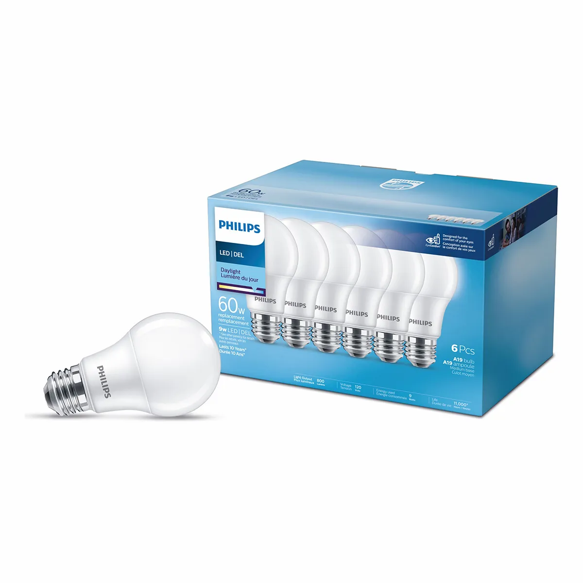 6PK LED Light Bulb 9w (60w) A19 Daylight