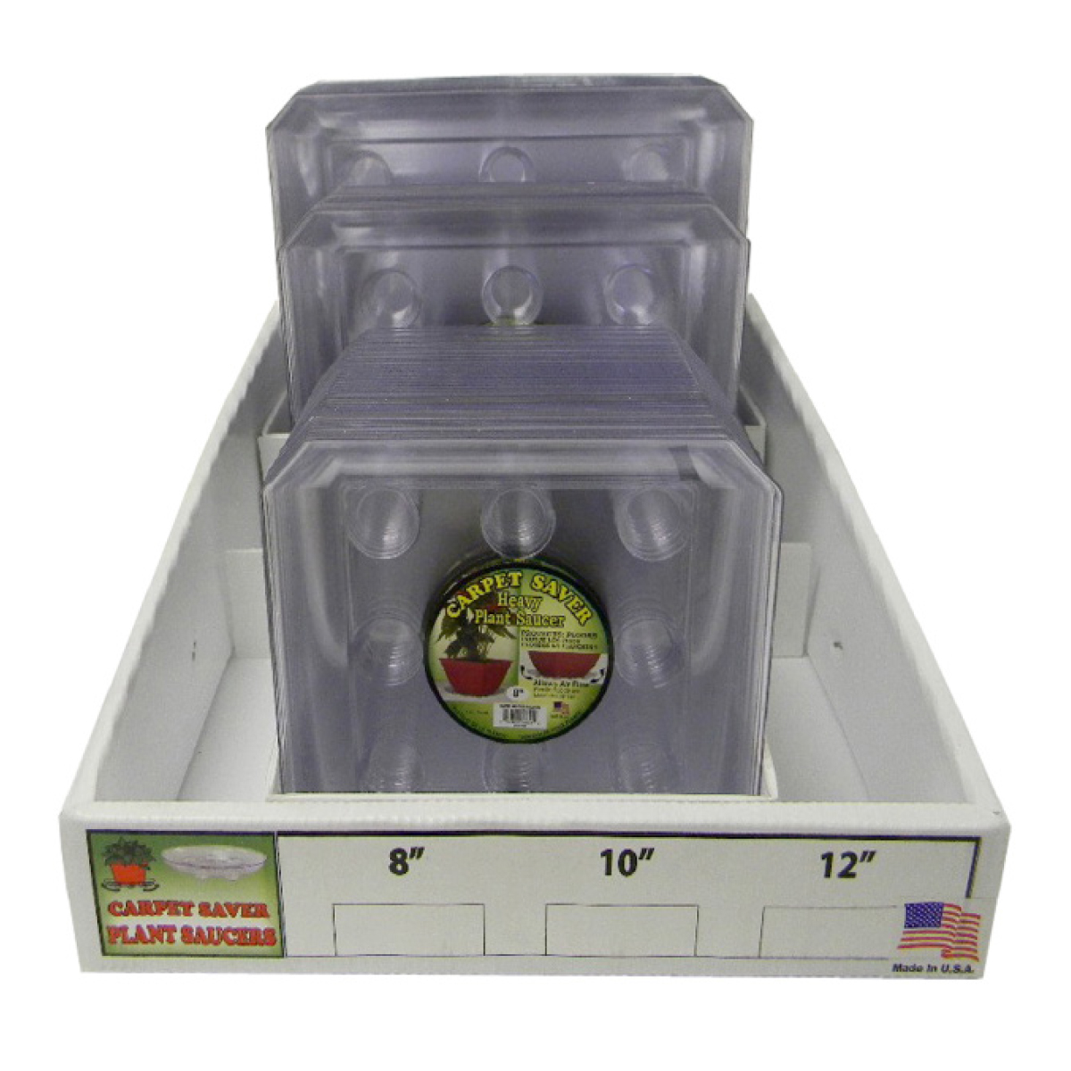 75PC Display Plant Saucer Vinyl Heavy Footed Clear Square 8in-12in with Counter Display