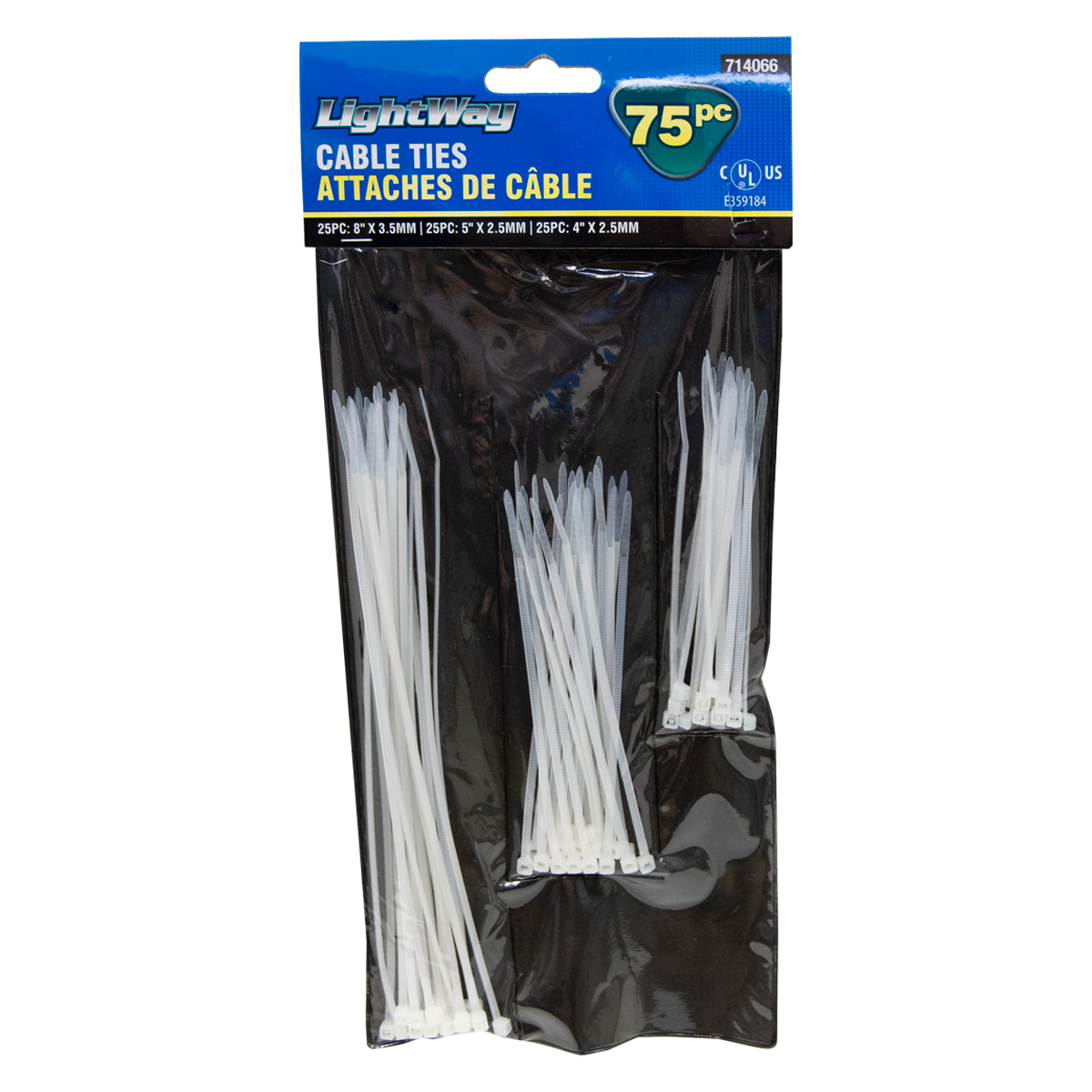 75PK Cable Ties 4in / 5in / 8in White