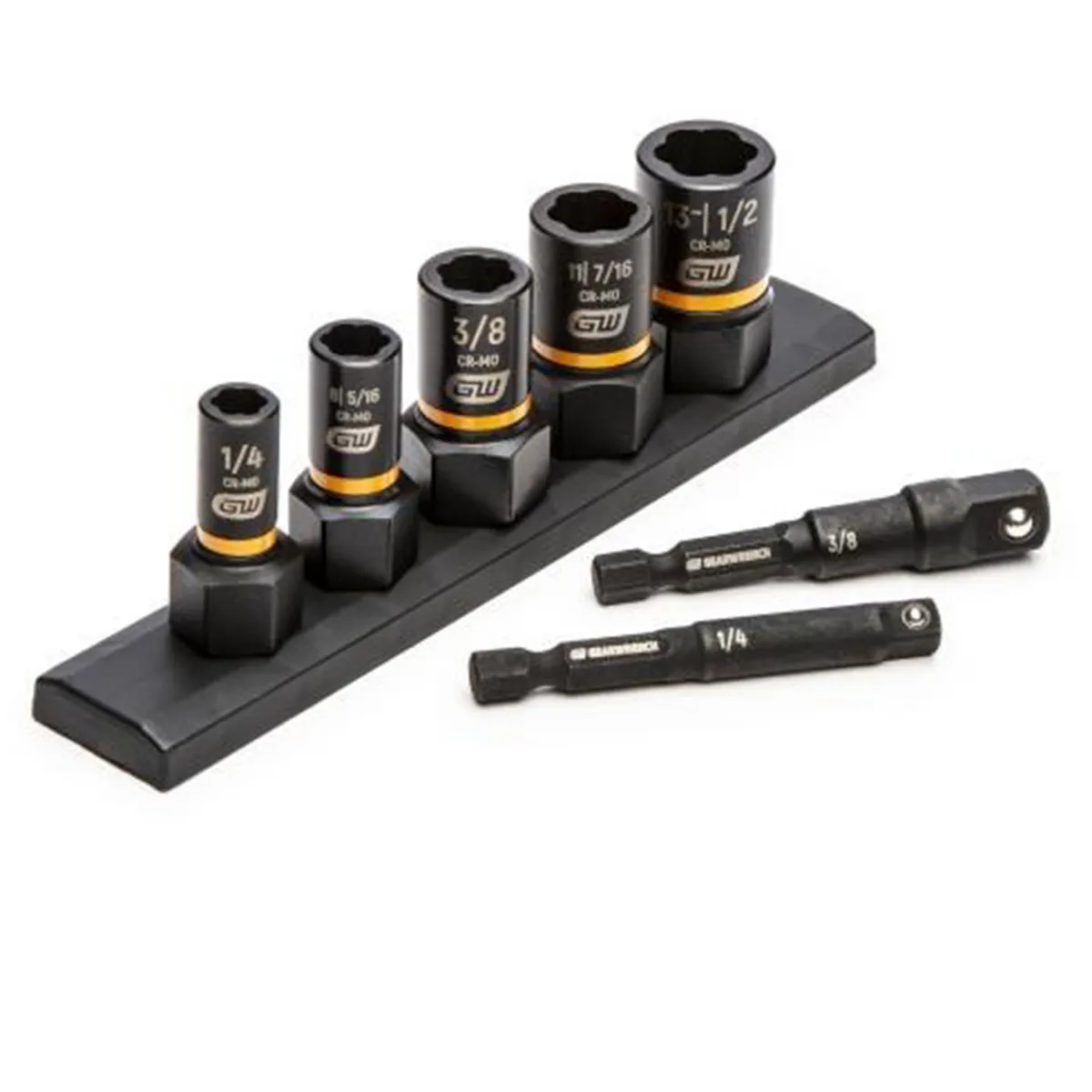 7PC 1/4in & 3/8in Drive SAE Bolt BiterT Impact Extraction Socket Set