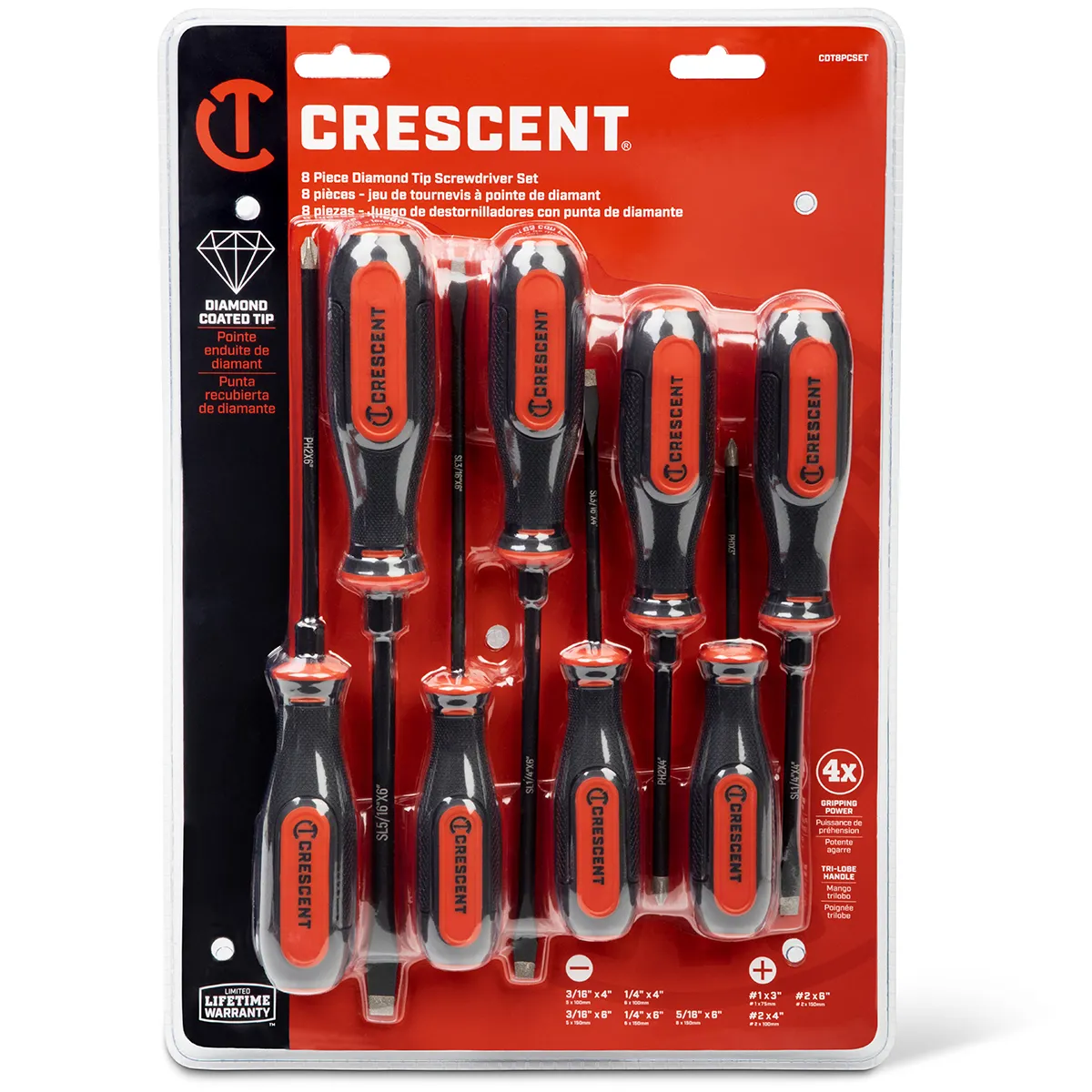• The Crescent diamond tip screwdrivers have a co-molded acetate handle for improved user comfort.