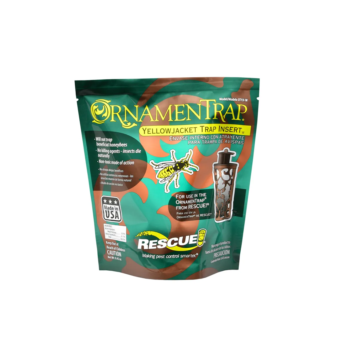 - Unique Features & Benefits Catches multiple species of yellow jackets Attractant lasts for weeks without daily maintenance Attractant refills available; including the RESCUE! 10-week Attractant Cartridge for even longer lasting performance Won't trap beneficial honeybees Double-chambered design prevents yellow jackets from escaping Durable plastic holds up in sunlight for seasons of use.