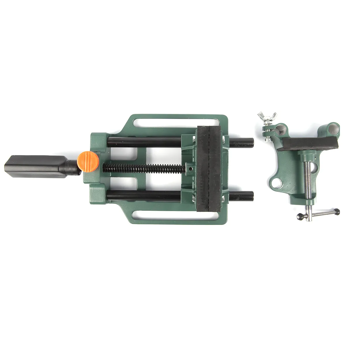 Mounting slots allow user to fix the vise directly to the bench top or drill press.