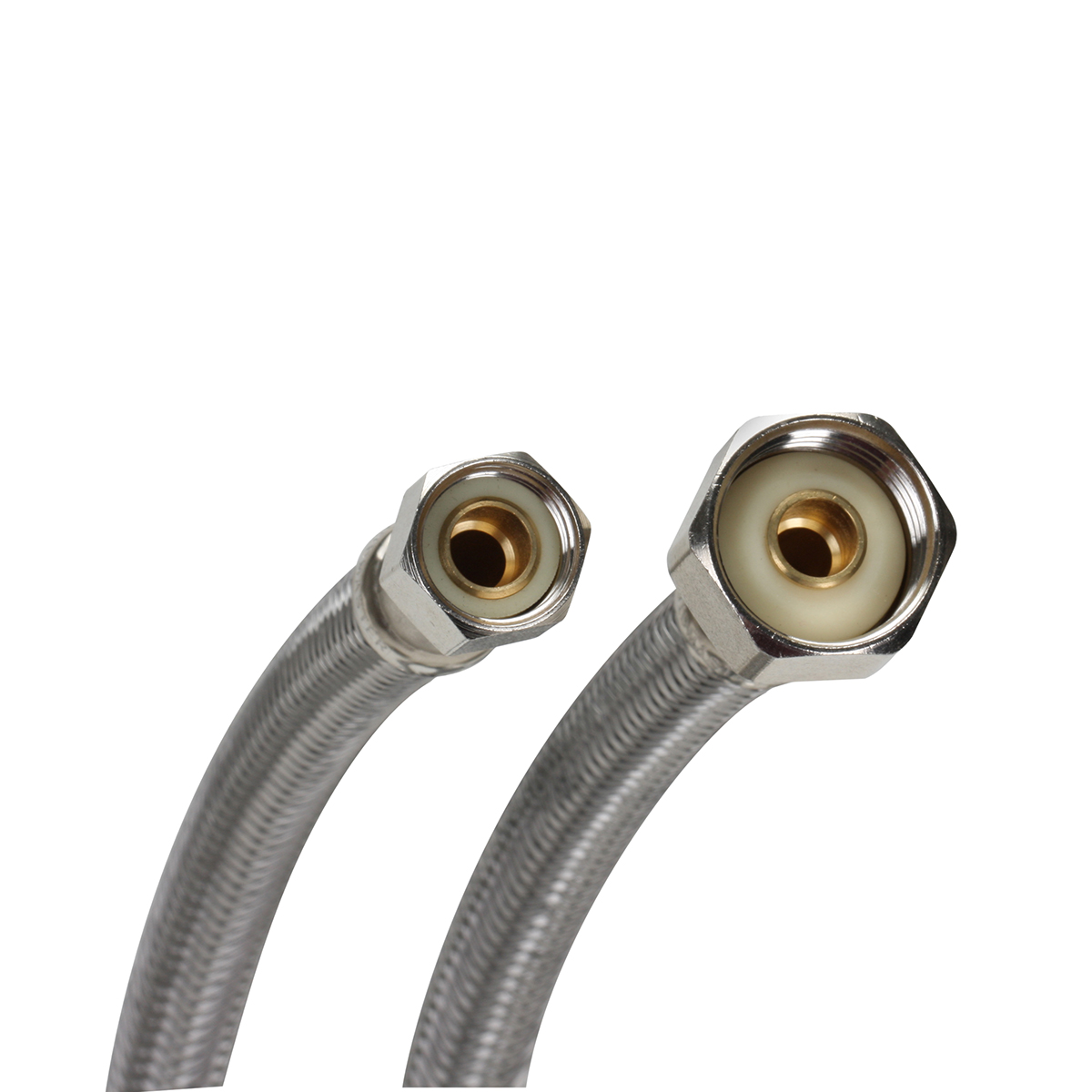 Fluidmaster faucet water supply connectors are built to last. Made of a tough polymer core covered with braided stainless steel wire; these connectors exceed every code requirement in the book for durability. Fluidmaster offers a wide variety of types and sizes; perfect for your home improvement efforts.