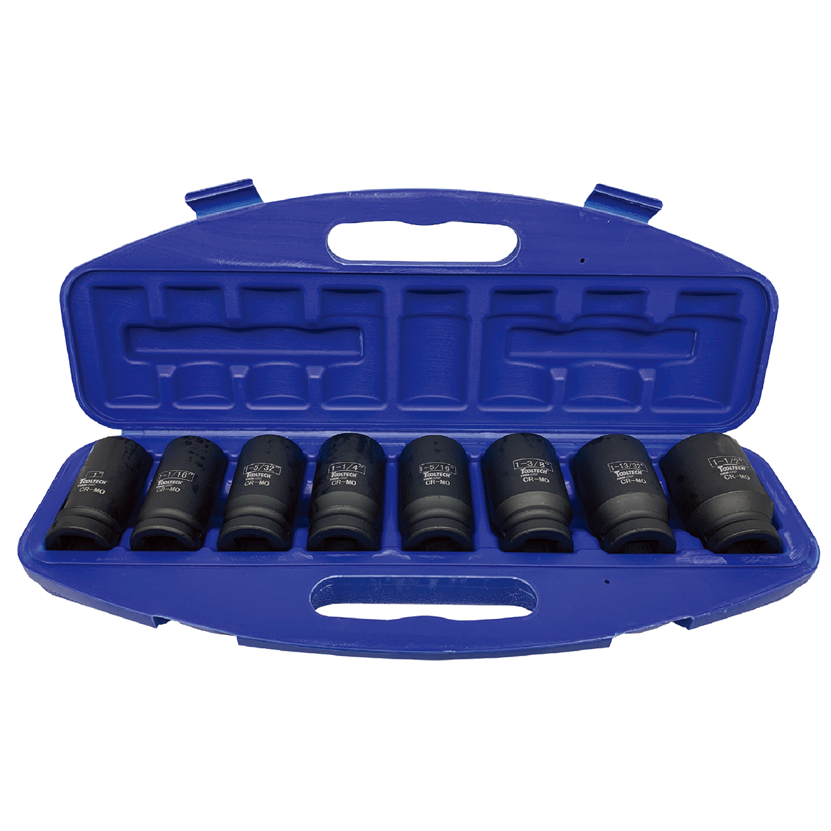 The Tooltech FirmGrip 9-Piece Deep Impact Socket is made from Chrome Vanadium Steel. The 6-point sockets feature Opti-Drive™ and are hardened; tempered; and chemically blacked for corrosion protection. Ideal for use with air; electric or manual impact wrenches in workshops; garages; body shops; tyre fitting bays etc.