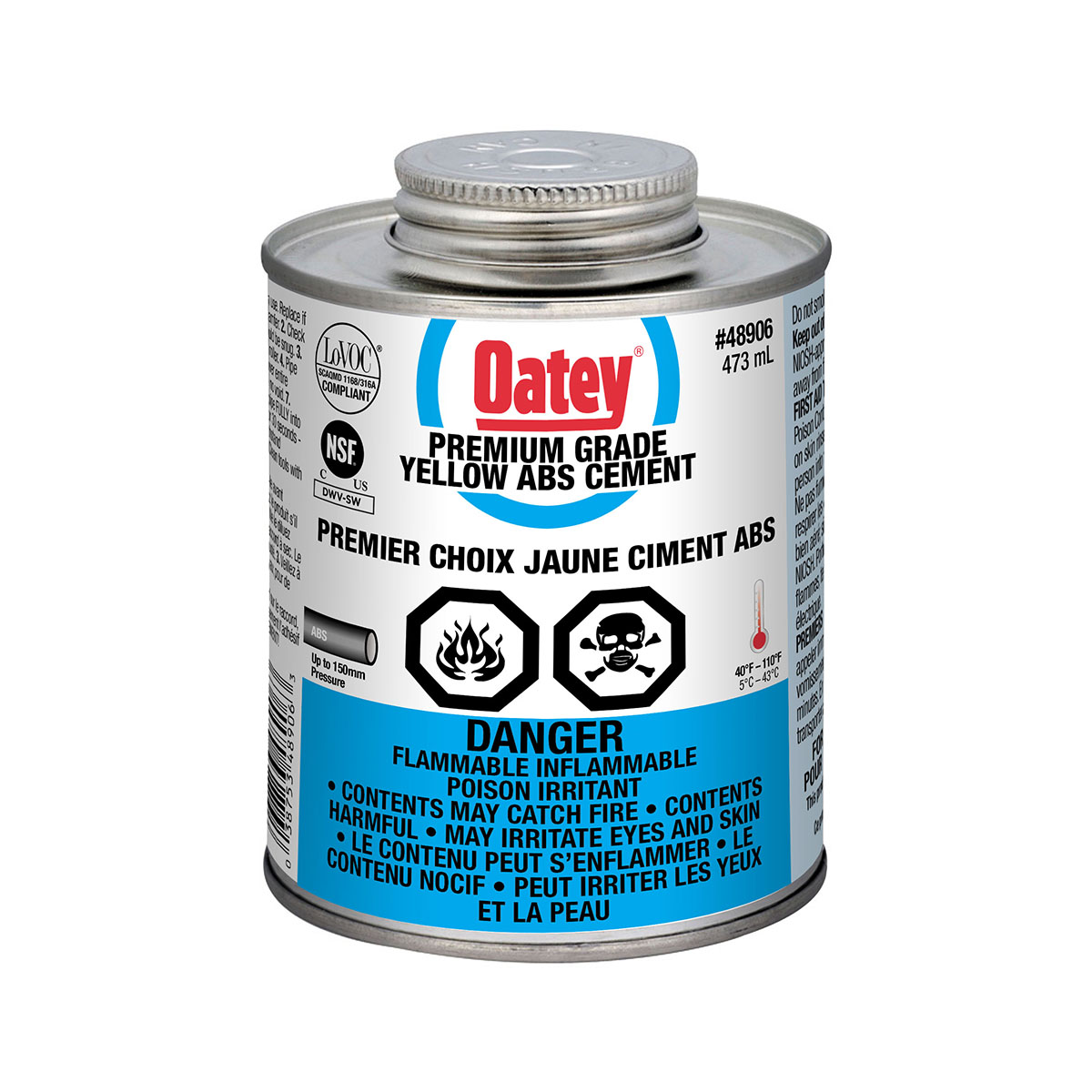 The Oatey® medium-bodied cement is adapted for ABS pipes and fittings up to 6 in in diameter. The low VOC solvent cement meets SCAQMD 1168/316A or BAAQMD method 40 and various environmental requirements. Appropriate for all non-pressure applications. Recommended application temperature from 4 to 43C. This product is backed by a 1-yer warranty.