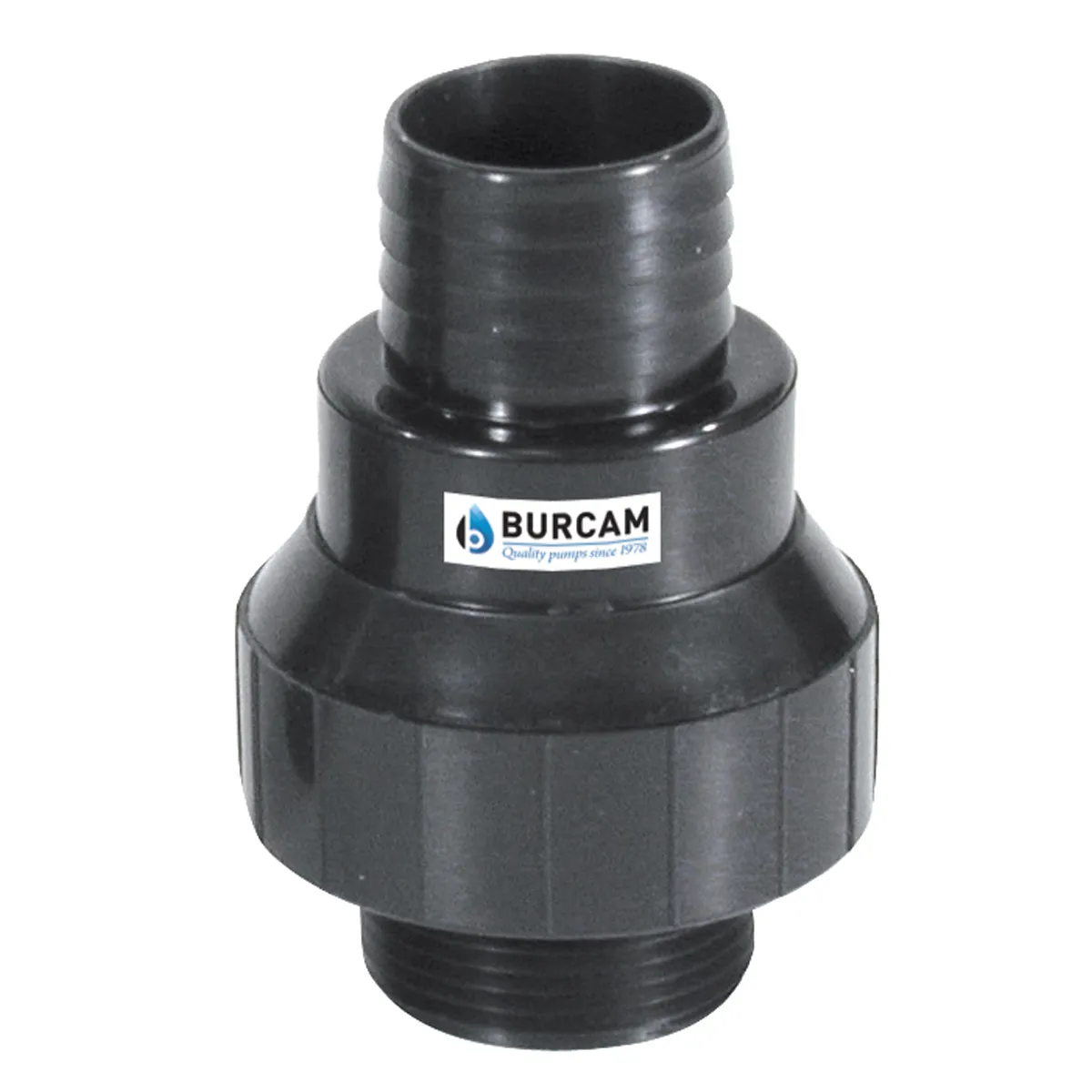 This check valve is designed to work with sump pumps. Its dual-sized slip-fit side accommodates either 1 1/4 inch and 1 1/2 inch pump discharge threads. It prevents water backflow into the pump.