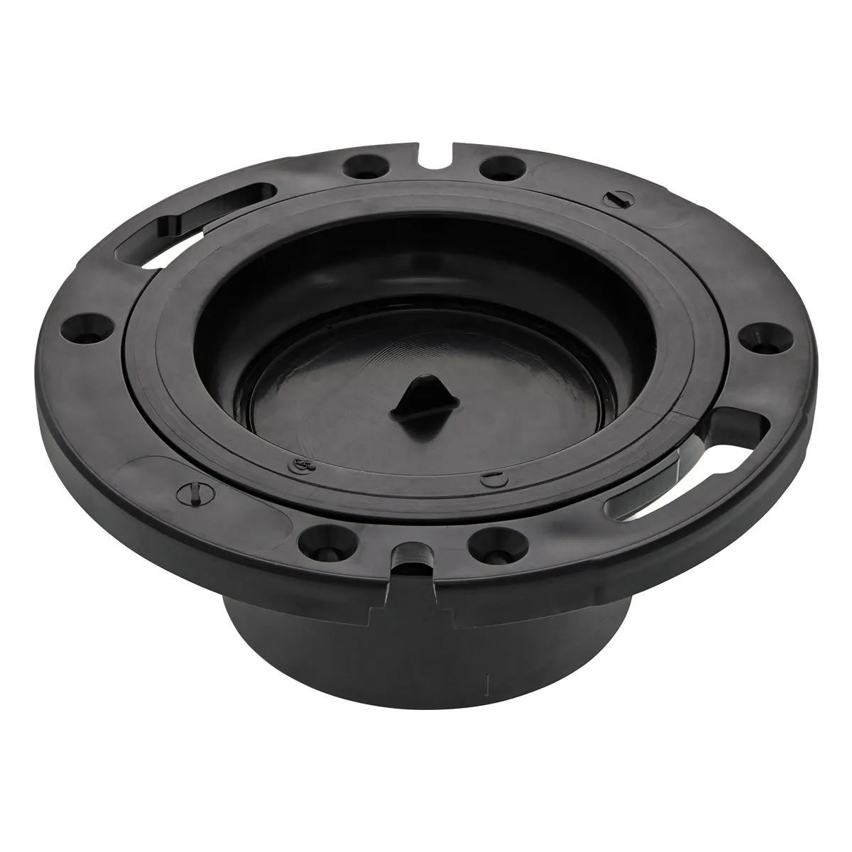 ABS Floor Flange Adj. with Molded in Test Cap 4in x 3in Black