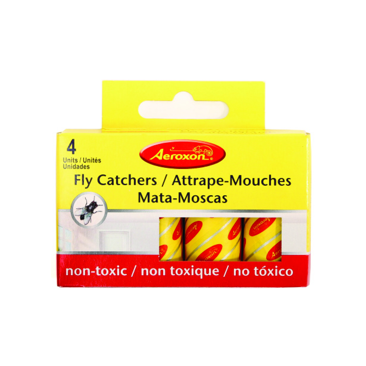 For use in any room The original Aeroxon fly catcher is the proven and environmentally-friendly way of controlling flies. Made from natural ingredients (resins; oils; fat); it is absolutely non-toxic. Mode of action - The fly catcher attracts flies by its spiral form and traps them on its sticky surface.