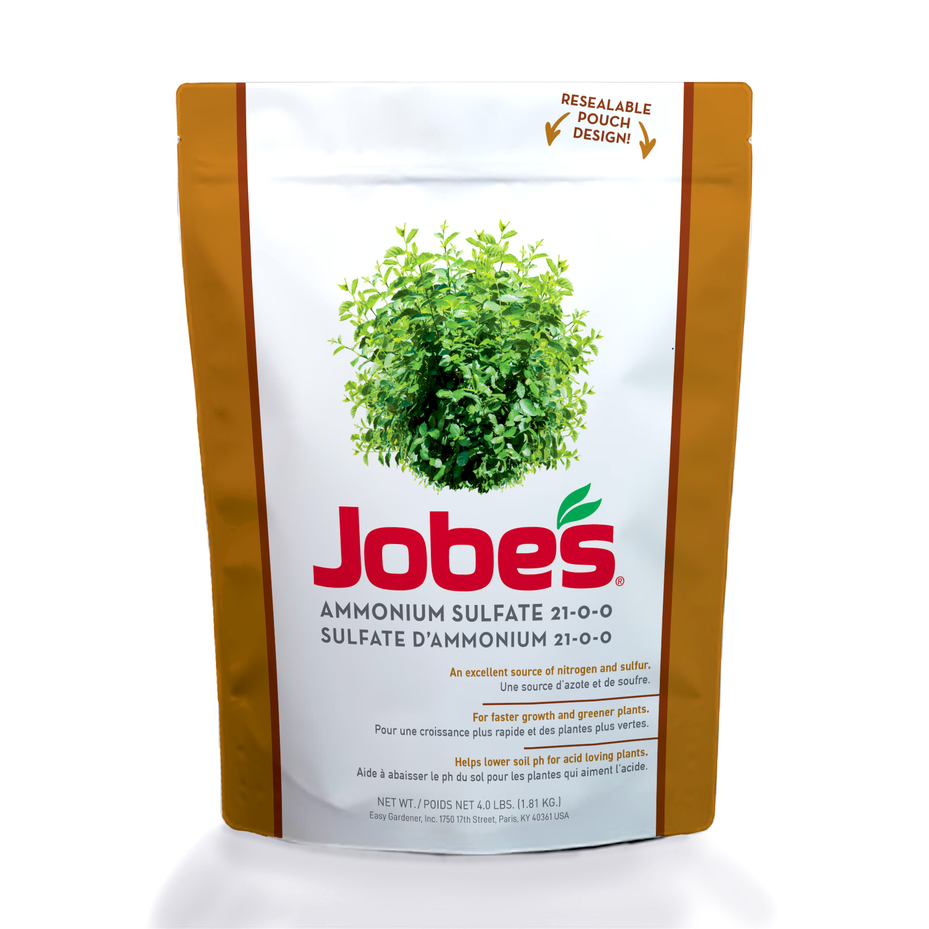 The primary use of Jobe’s Ammonium Sulfate is as a fertilizer for alkaline soils In the soil; the ammonium ion is released and forms a small amount of acid; lowering the pH balance of the soil; while contributing essential nitrogen for plant growth.