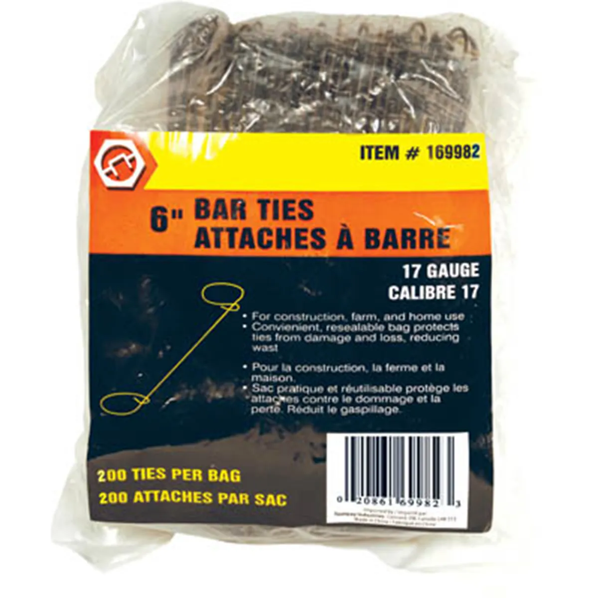 200PK Black Annealed Steel Bar Ties 17ga x 6in