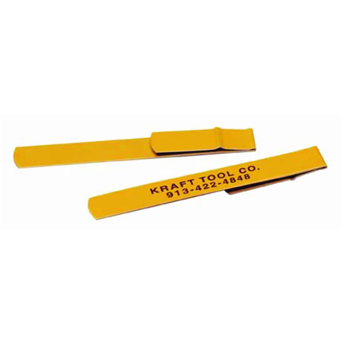 Use these line twigs to set up mason's line for on brick walls to create even courses all along a wall. Manufactured from spring steel to provide give for holding power. The end of the twigs snaps around mason's line and eliminate sagging. An enamel finish resists rust for a long life. The yellow color is easy to see on a jobsite and stands out in contrast to most brick and block. Use with Kraft Tool Co.® or W. Rose™ Mason's Line for superior results as you create an even brick line. There are 14 twigs in a package.