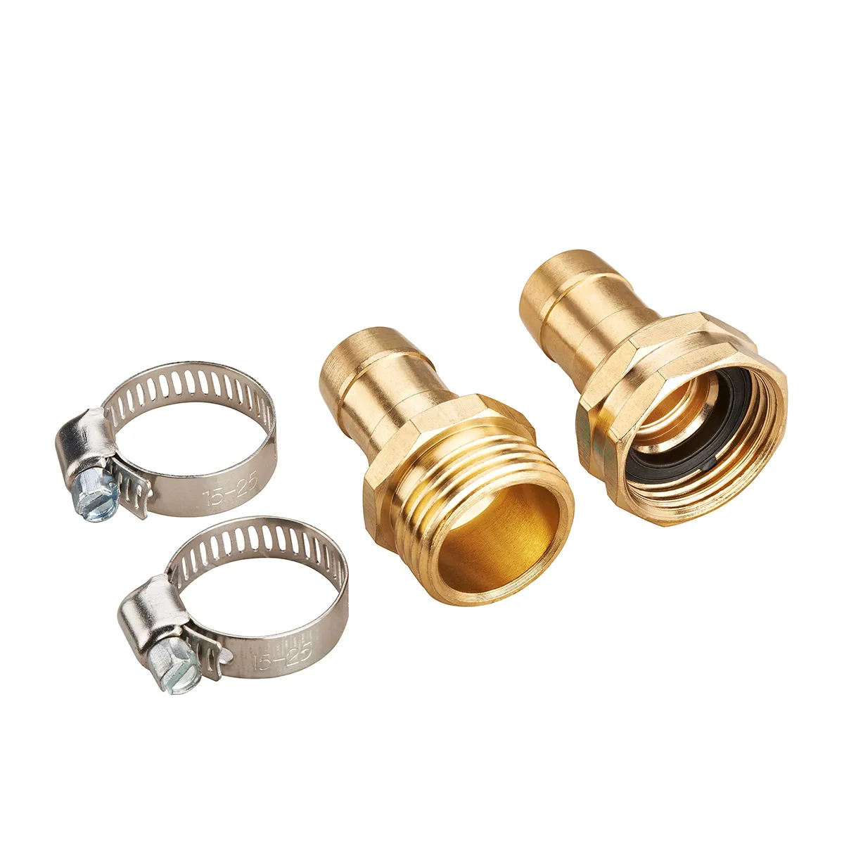 Brass Hose Repair Coupling Male & Female 5/8in W/ Clamps