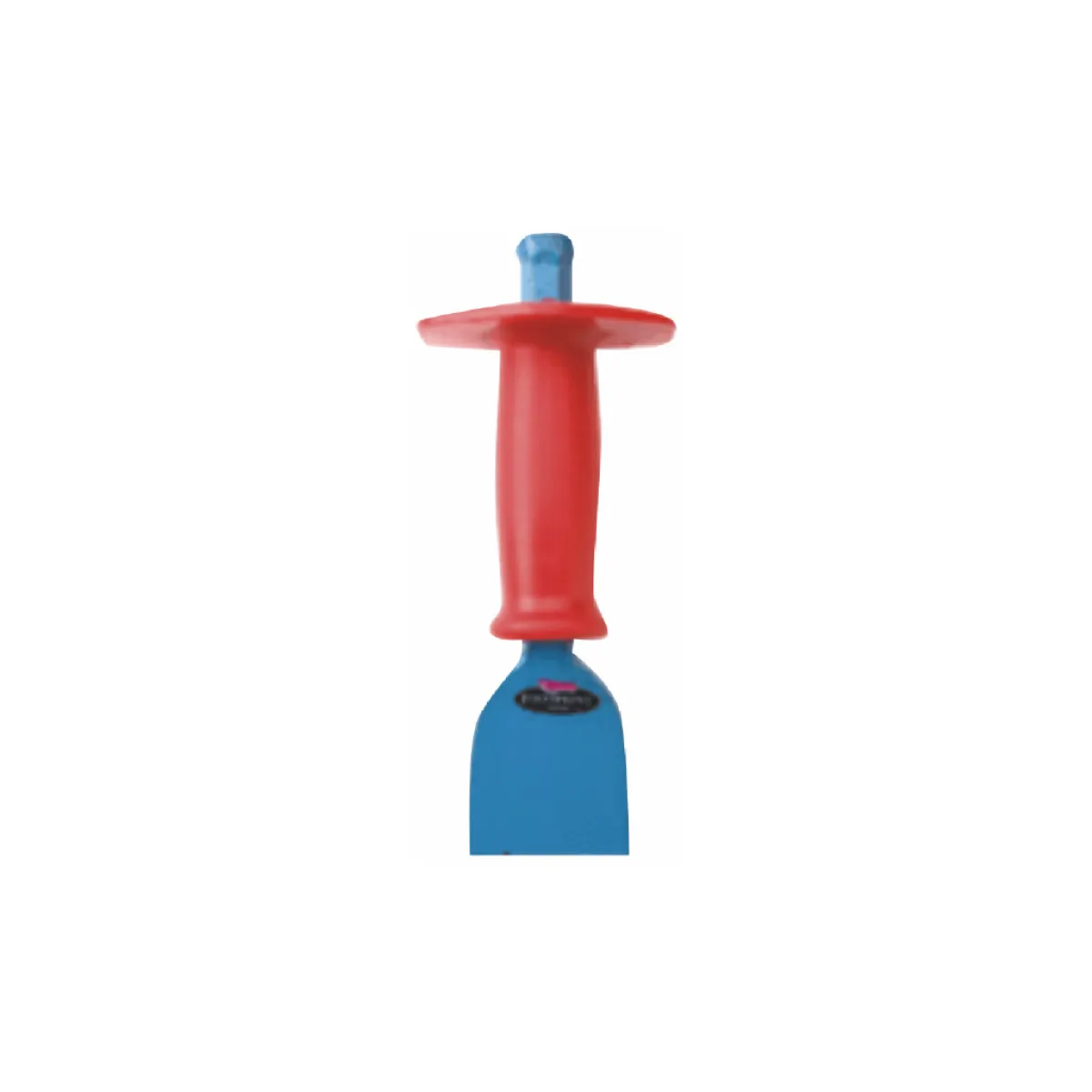 A carbon steel blade; with protective grip and anti-mushrooming head; used to smooth the rippled surface left by scuffing. Sometimes known as an edge in chisel.